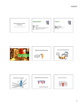 Barack Obama ran an innovative and highly effective digital campaign that helped propel him to the presidency in 2008. His campaign made extensive use of social media platforms like Facebook and YouTube to engage supporters and spread his message. Obama had millions more online supporters and video views than his opponent John McCain. Obama also built sophisticated grassroots organizing tools on his website that allowed supporters to easily volunteer, plan events, donate, and mobilize their networks. This digital strategy was a major factor in Obama's success and transformed political campaigning.