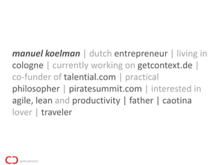This document summarizes Manuel Koelman's talk on how pirates build products using lean startup principles. The key points are: