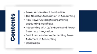 Microsoft Power Automate is designed to streamline accounting workflows by automating repetitive tasks, improving efficiency, accuracy, and cost savings. It offers features such as automated data entry, document management, and integration with various accounting tools, ensuring real-time insights and compliance. By implementing Power Automate, businesses can enhance their financial operations and decision-making capabilities.