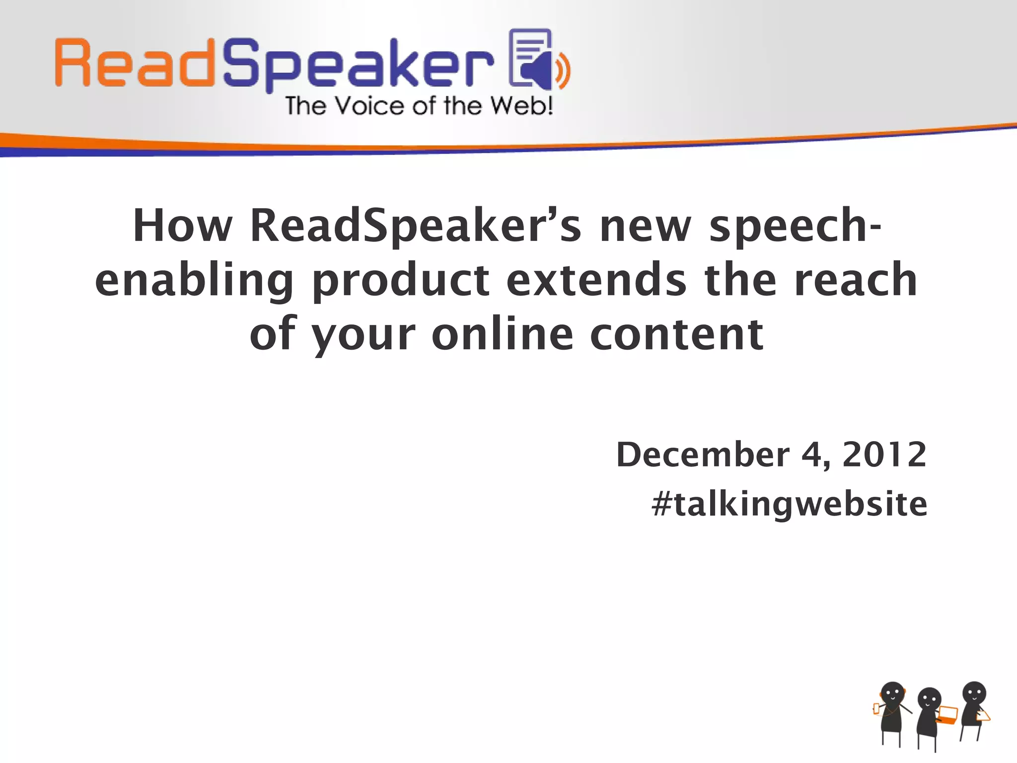 This document discusses ReadSpeaker's new speech-enabling product and how it extends the reach of online content. It highlights key benefits like improved accessibility, easier customization through pre-made templates and skins, and a more user-friendly design. The revamped product uses modern web standards like HTML5 and is easier to implement through simpler code. It also offers enhanced accessibility and new end-user features such as automatic scrolling and autoselection of the best playback technology.