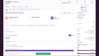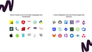 Sentry is an open-source error tracking tool that helps monitor and fix crashes in real time. It provides alerts on errors, tools to triage issues like breadcrumbs and release information, and allows developers to resolve issues by committing fixes with references to the issue. Sentry integrates with development tools and pipelines to track deployments and provide visibility into errors and their impacts.