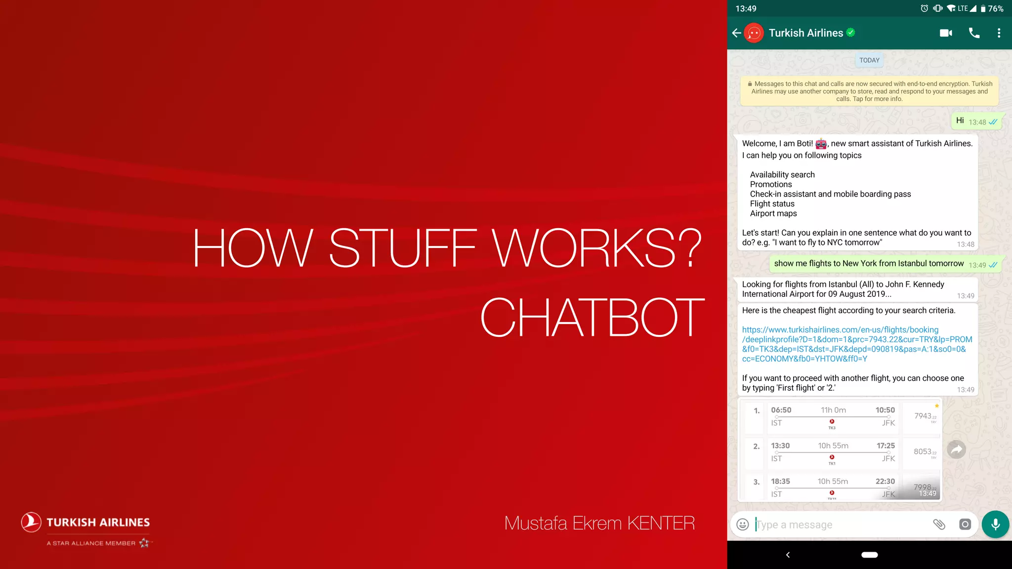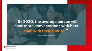 The document discusses the growing importance of chatbots in customer service, particularly within the airline industry, projecting significant growth in adoption rates by 2020. It highlights various statistics, such as the expected savings and efficiency gains from chatbot usage. Additionally, it outlines the capabilities of Turkish Airlines' chatbot 'Boti' and its features for enhancing customer experience.