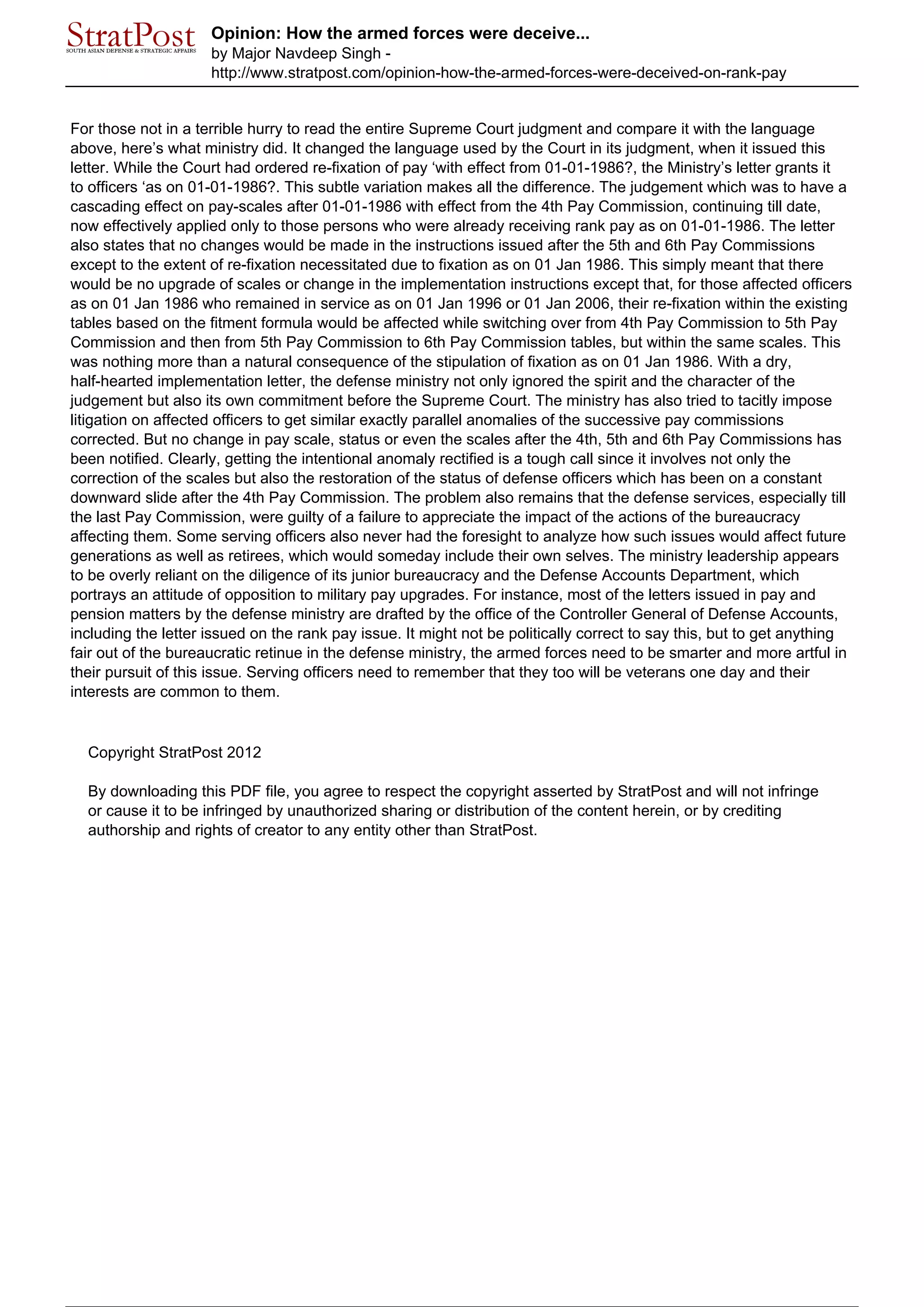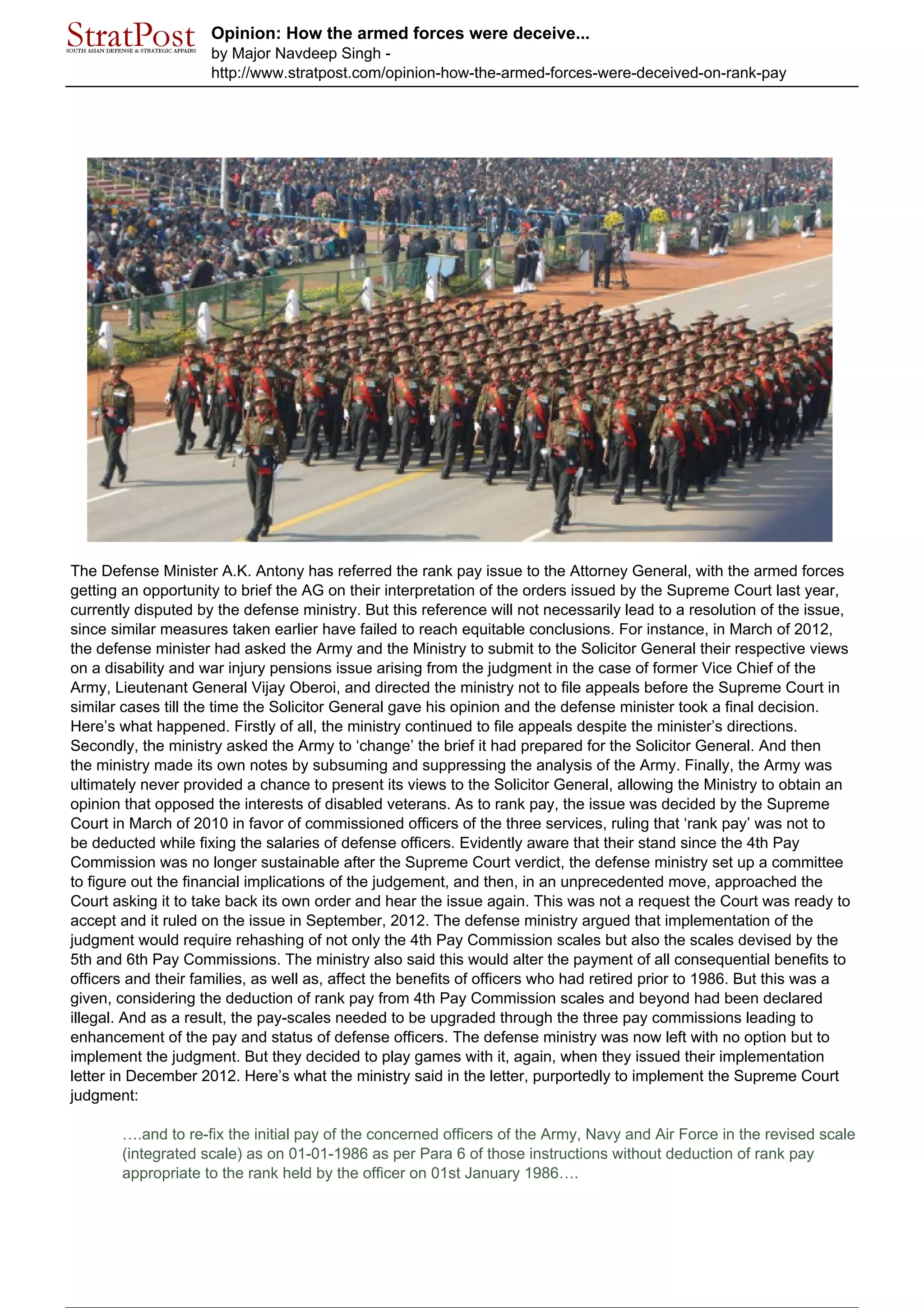 The Defense Minister referred the rank pay issue to the Attorney General for the armed forces to present their interpretation of a Supreme Court order from last year that is disputed by the defense ministry. However, similar past referrals have failed to reach equitable conclusions, as the ministry has overridden the views of the armed forces. Specifically, in 2012 the ministry continued filing appeals against a court order despite being directed not to, asked the Army to change its brief, and ultimately prevented the Army from presenting its views. Currently, the ministry only partially implemented the 2010 Supreme Court order on rank pay in a way that limits the financial impact, contradicting the spirit and intent of the court's decision.