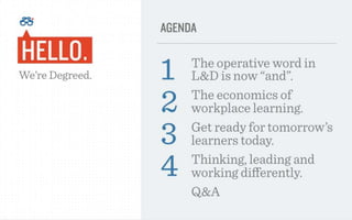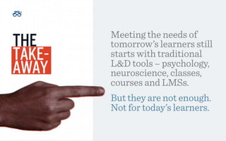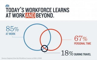 The 2015 Corporate Learning Factbook by Bersin by Deloitte provides insights into corporate learning trends, workforce development, and investment in learning technologies. It highlights the increasing focus on personalized learning experiences and the need for organizations to adapt to changing workforce demands. The report emphasizes the importance of aligning learning strategies with business objectives to enhance employee skills and performance.