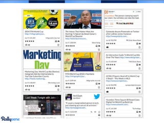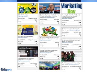 The document explains how Rallyverse's platform discovers and recommends content by analyzing thousands of sources to create real-time content recommendations aligned with marketing objectives. It highlights that a significant portion of trending content is related to the World Cup event, showcasing the platform's ability to incorporate popular topics into digital marketing strategies. By using a patented algorithm, Rallyverse scores content pieces based on their relevance and alignment with brand preferences, resulting in a higher focus on trending entities like the World Cup.