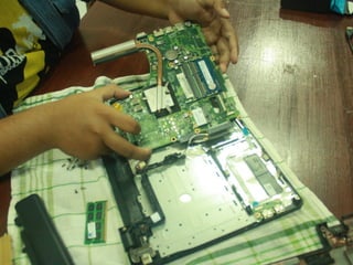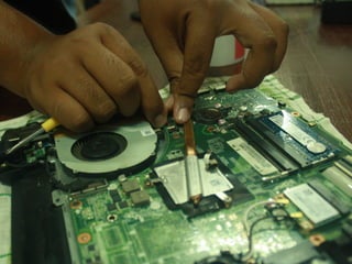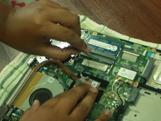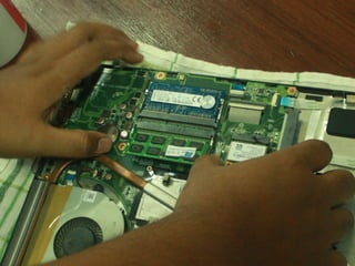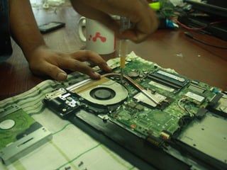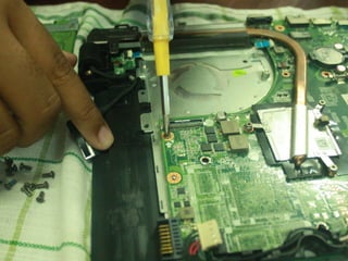 Dokumen ini memberikan panduan langkah demi langkah untuk membongkar notebook Acer Aspire E5, termasuk alat dan tips penting untuk setiap tahap. Selain itu, terdapat rekomendasi perawatan untuk laptop, seperti cara menyimpan dan penggunaan cooling pad. Penulis menekankan pentingnya memperlakukan perangkat dengan hati-hati selama proses perbaikan.