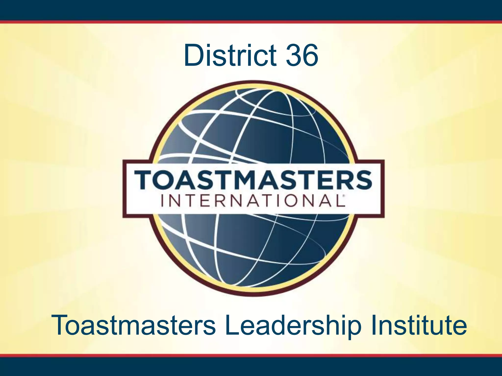 The document outlines the agenda for the District 36 Toastmasters Leadership Institute, including introductions, public relations, and branding information. It covers the essential elements of Toastmasters' brand, communication strategies, and the Distinguished Club Plan (DCP) for success. Additionally, it emphasizes member engagement and the importance of leadership roles within the organization.