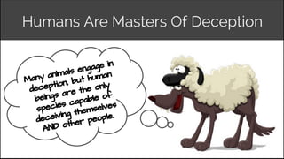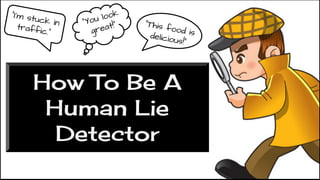 The document discusses human deception, emphasizing that humans uniquely deceive themselves and others. It identifies factors influencing dishonesty and provides tips on spotting lies through physical and verbal clues. Additionally, it mentions a service called Instant Checkmate for verifying truthfulness, with disclaimers about its use and accuracy.