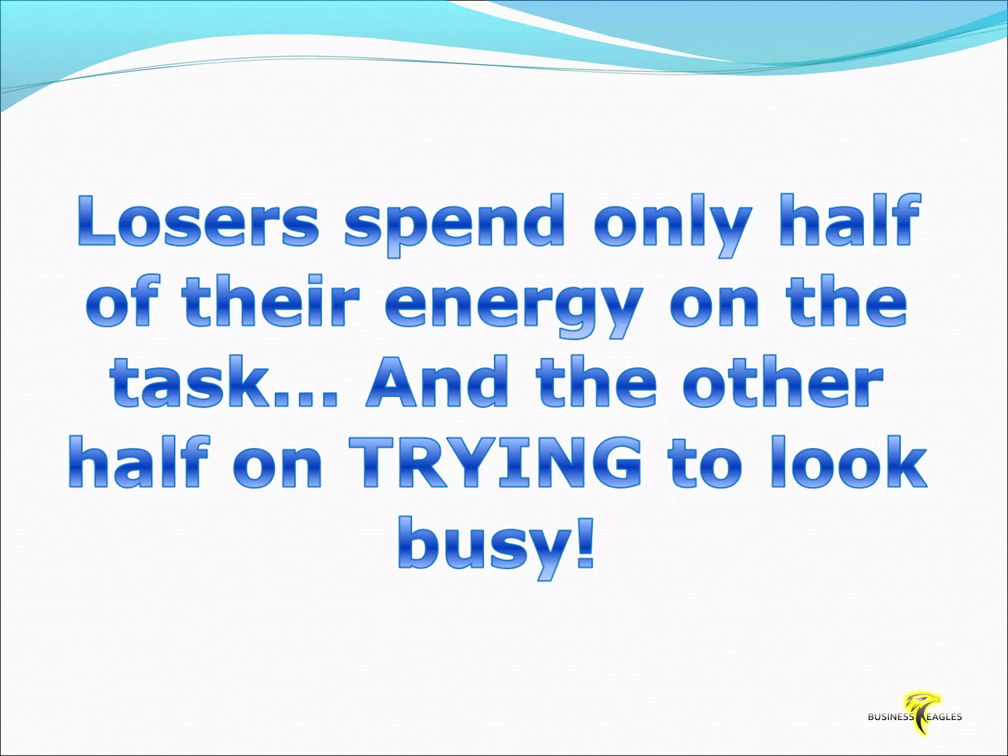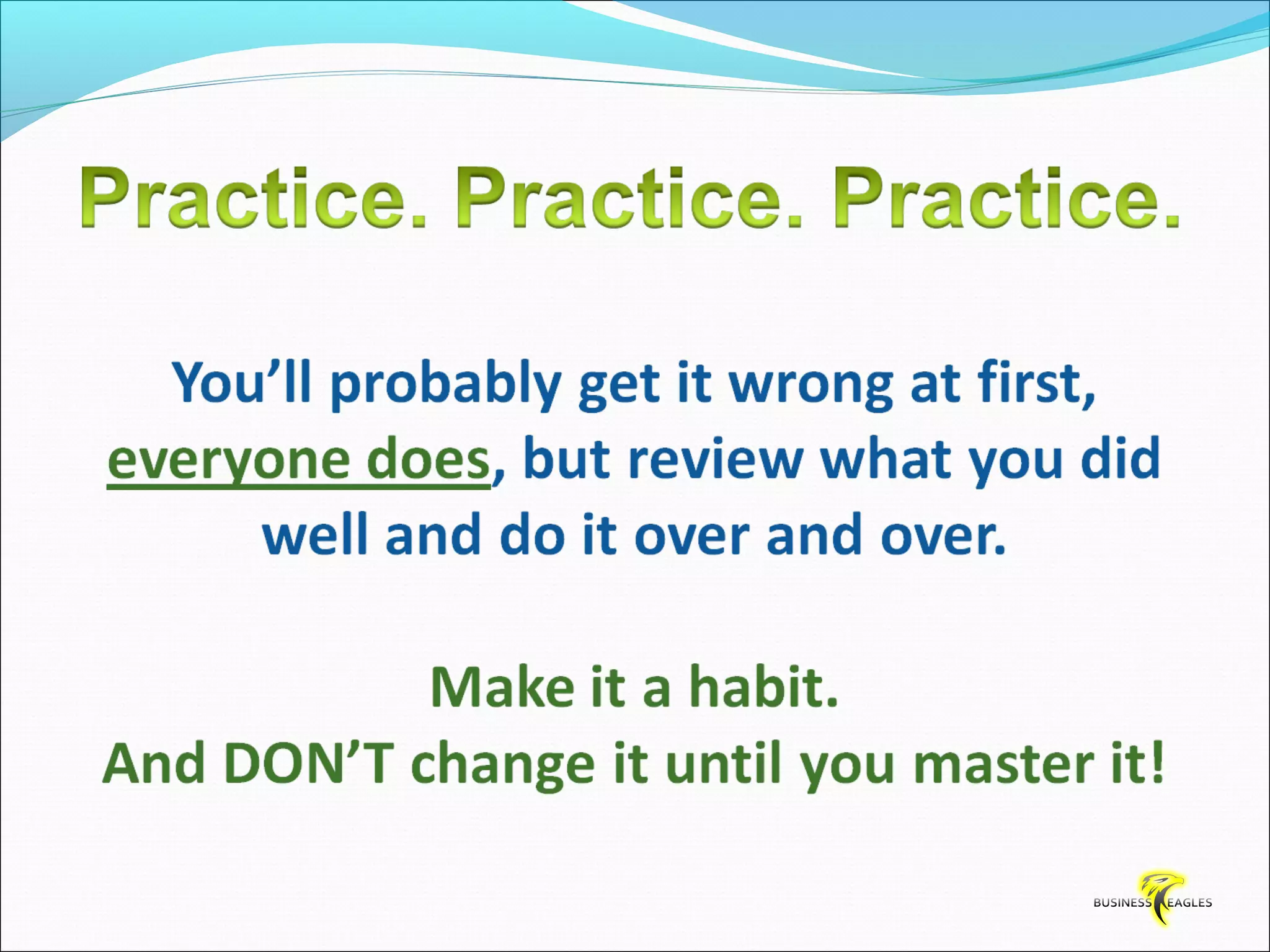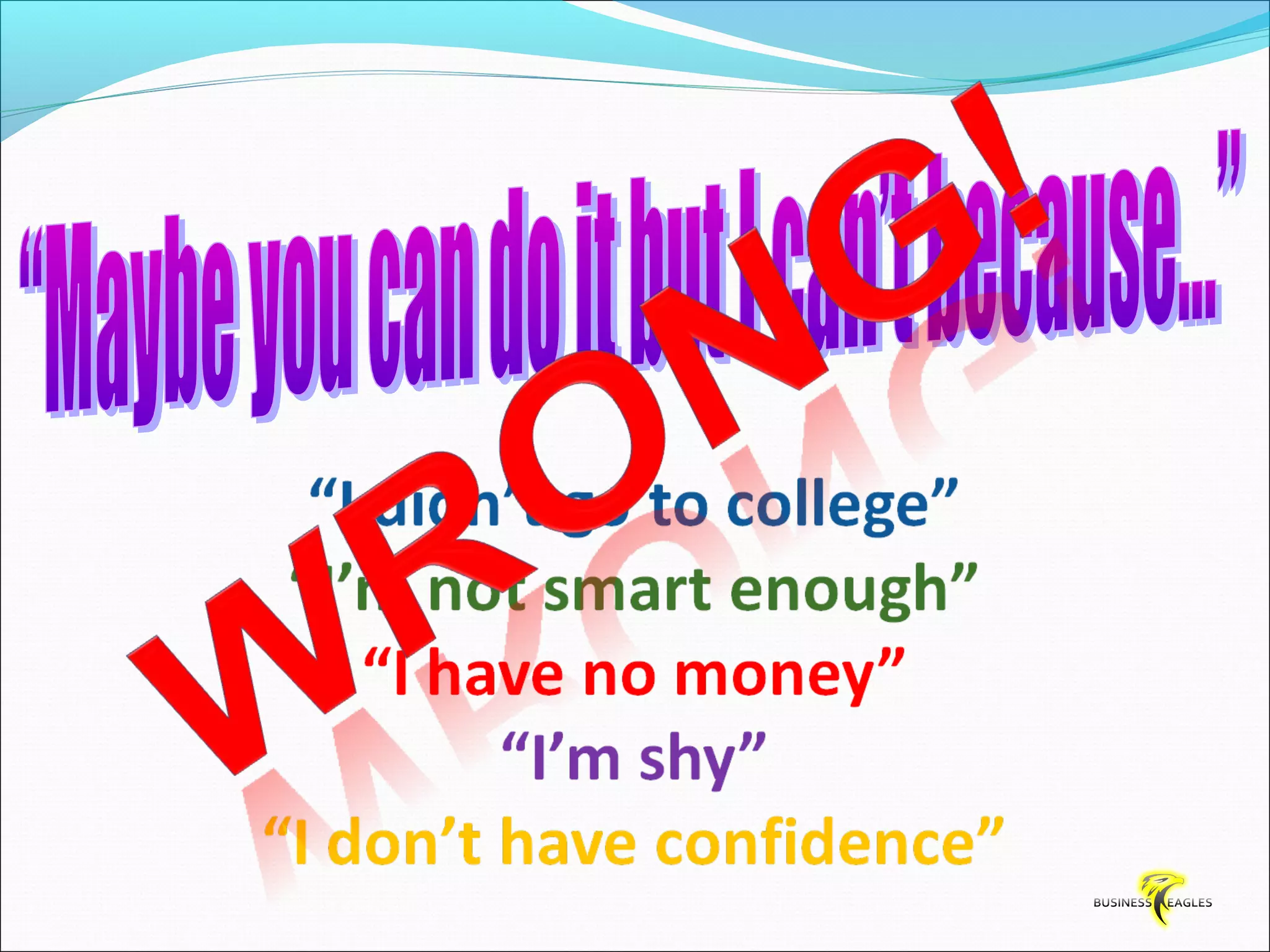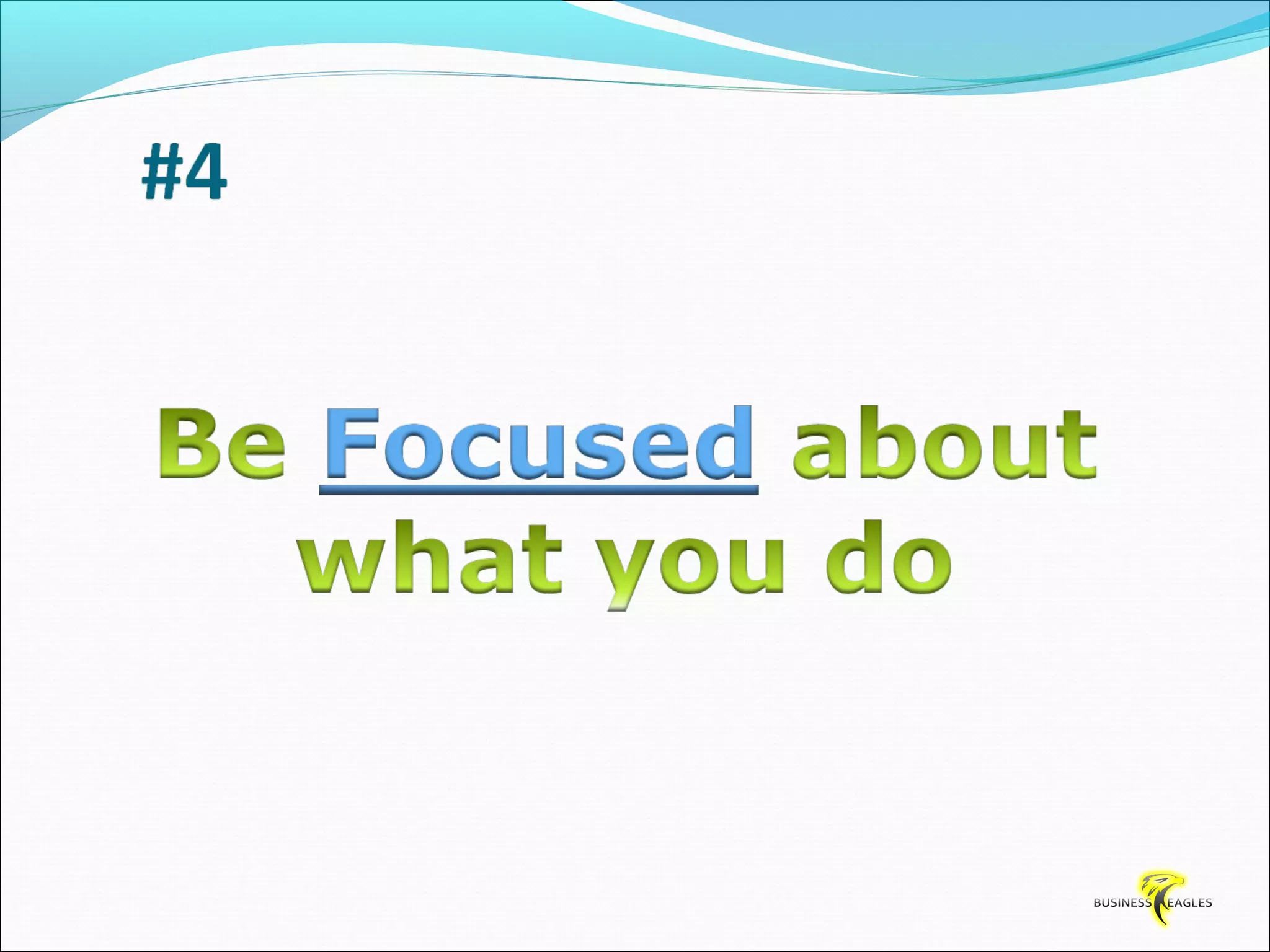 The document discusses various attributes and habits of successful people such as focusing on the most important 20% of tasks, taking responsibility for results, setting goals, believing in themselves, and being persistent and determined. It emphasizes that success requires action and hard work, and that one must take steps towards their goals every day through habits like reading, listening to audio programs, and visualizing success.