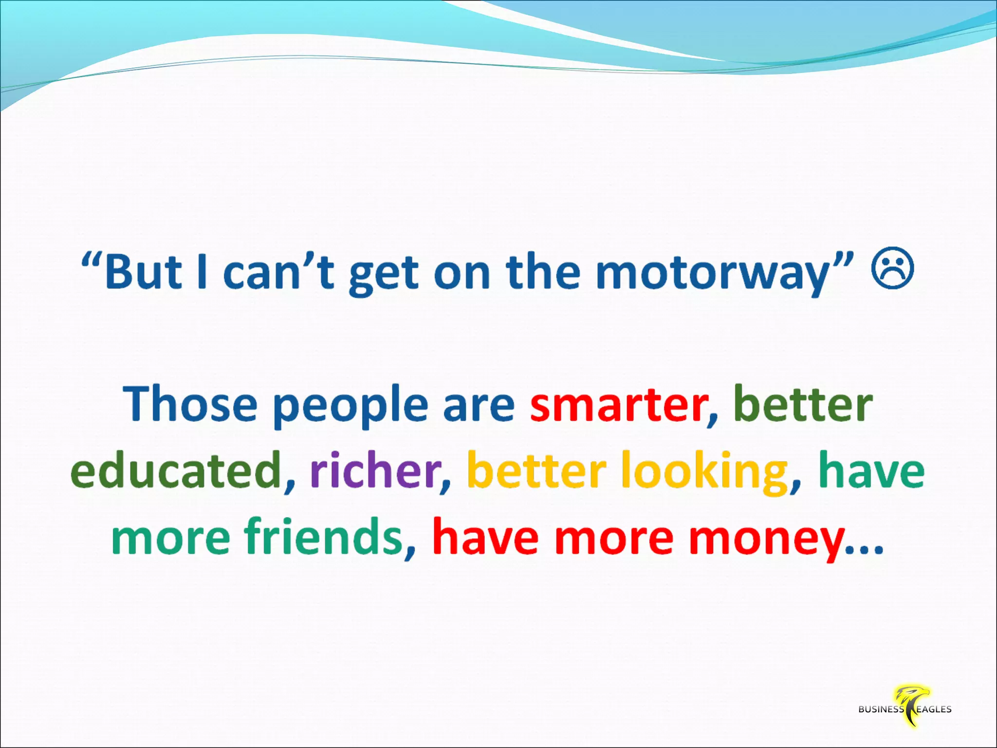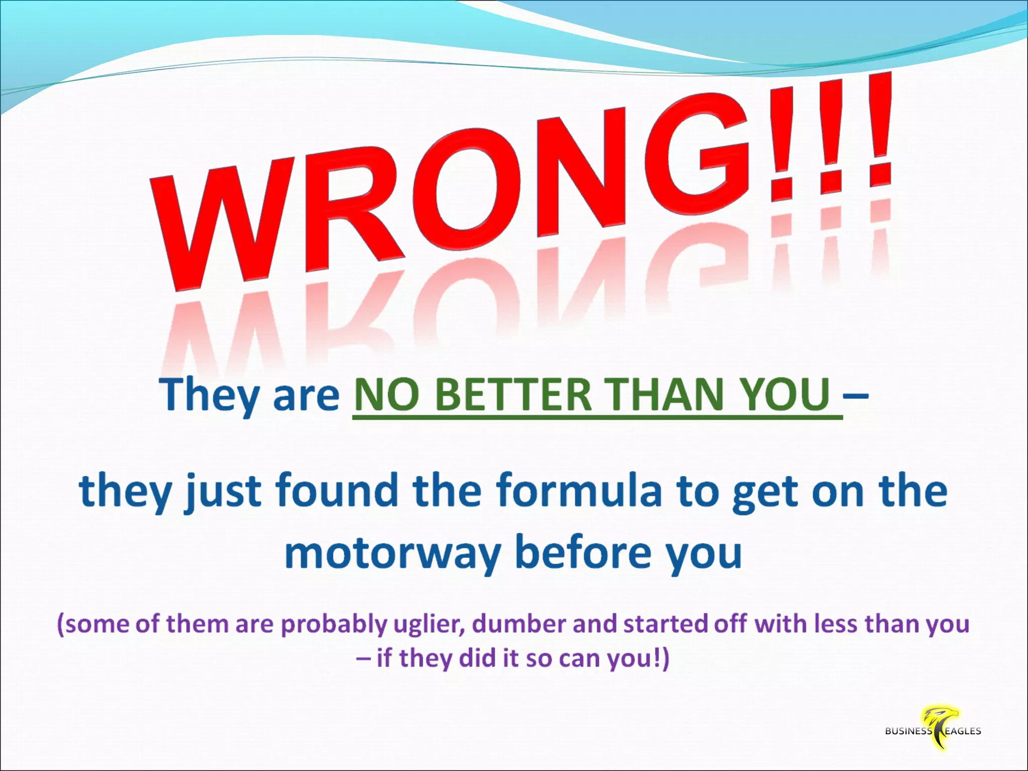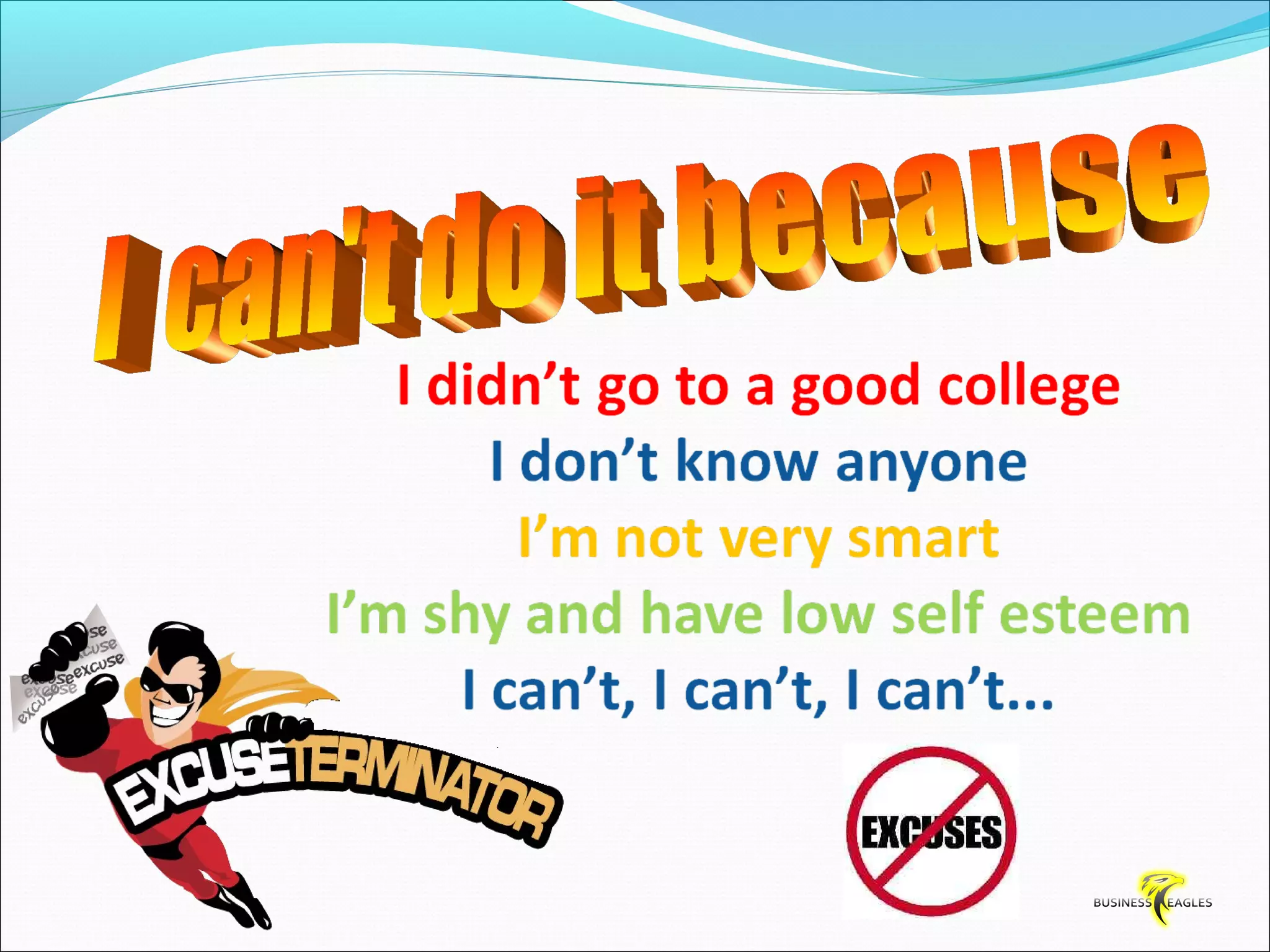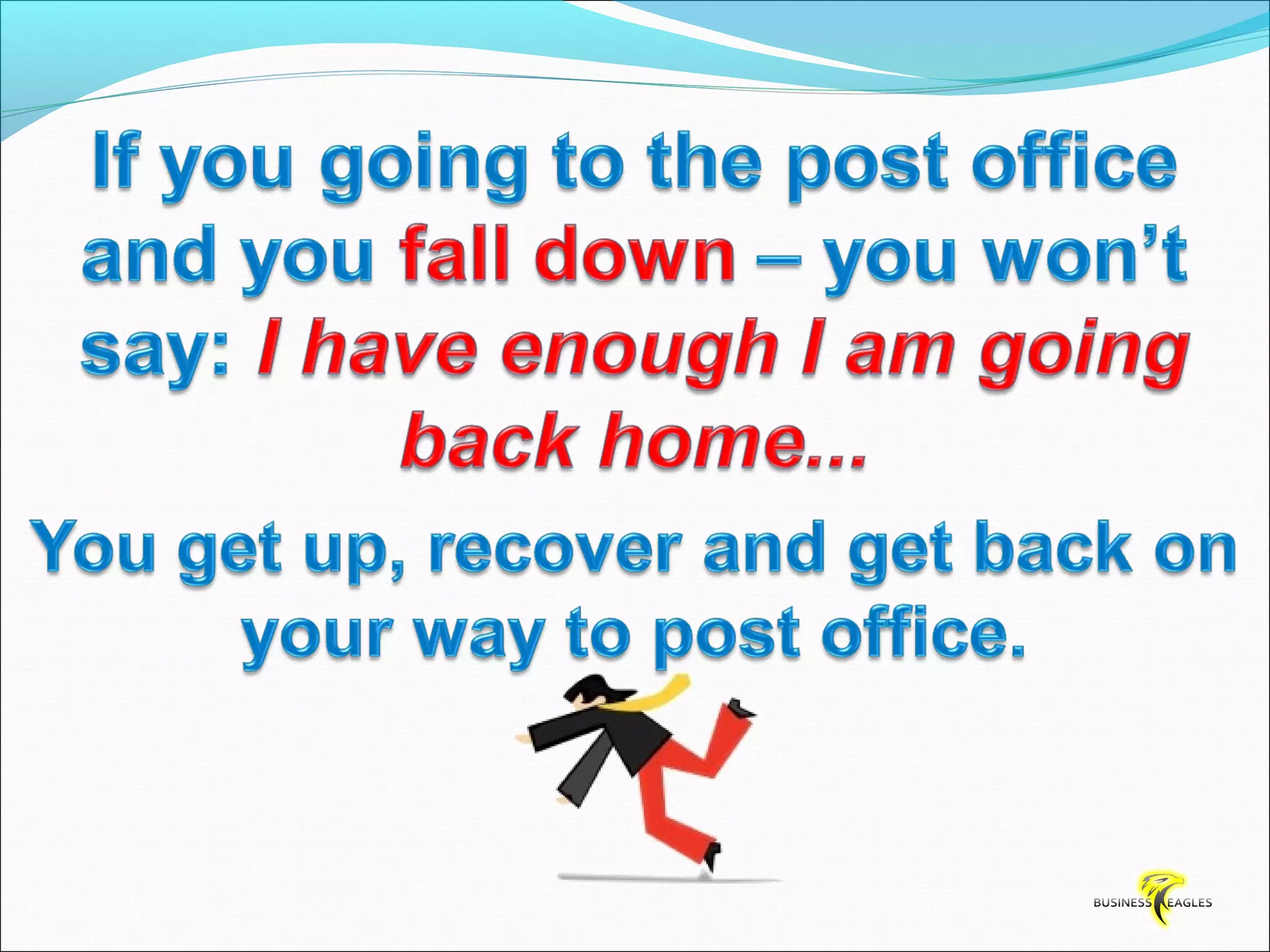 The document discusses various attributes and habits of successful people such as focusing on the most important 20% of tasks, taking responsibility for results, setting goals, believing in themselves, and being persistent and determined. It emphasizes that success requires action and hard work, and that one must take steps towards their goals every day through habits like reading, listening to audio programs, and visualizing success.