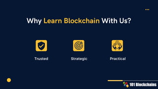The document outlines the path to becoming a blockchain engineer, highlighting essential skills such as knowledge of blockchain basics, proficiency in programming languages, and understanding various blockchain platforms. It also emphasizes the importance of obtaining relevant degrees and certifications to enhance credibility and job prospects, as well as the promising career opportunities due to high demand in the field. Furthermore, it describes the benefits of pursuing a career in blockchain engineering, including attractive salaries and flexible work environments.