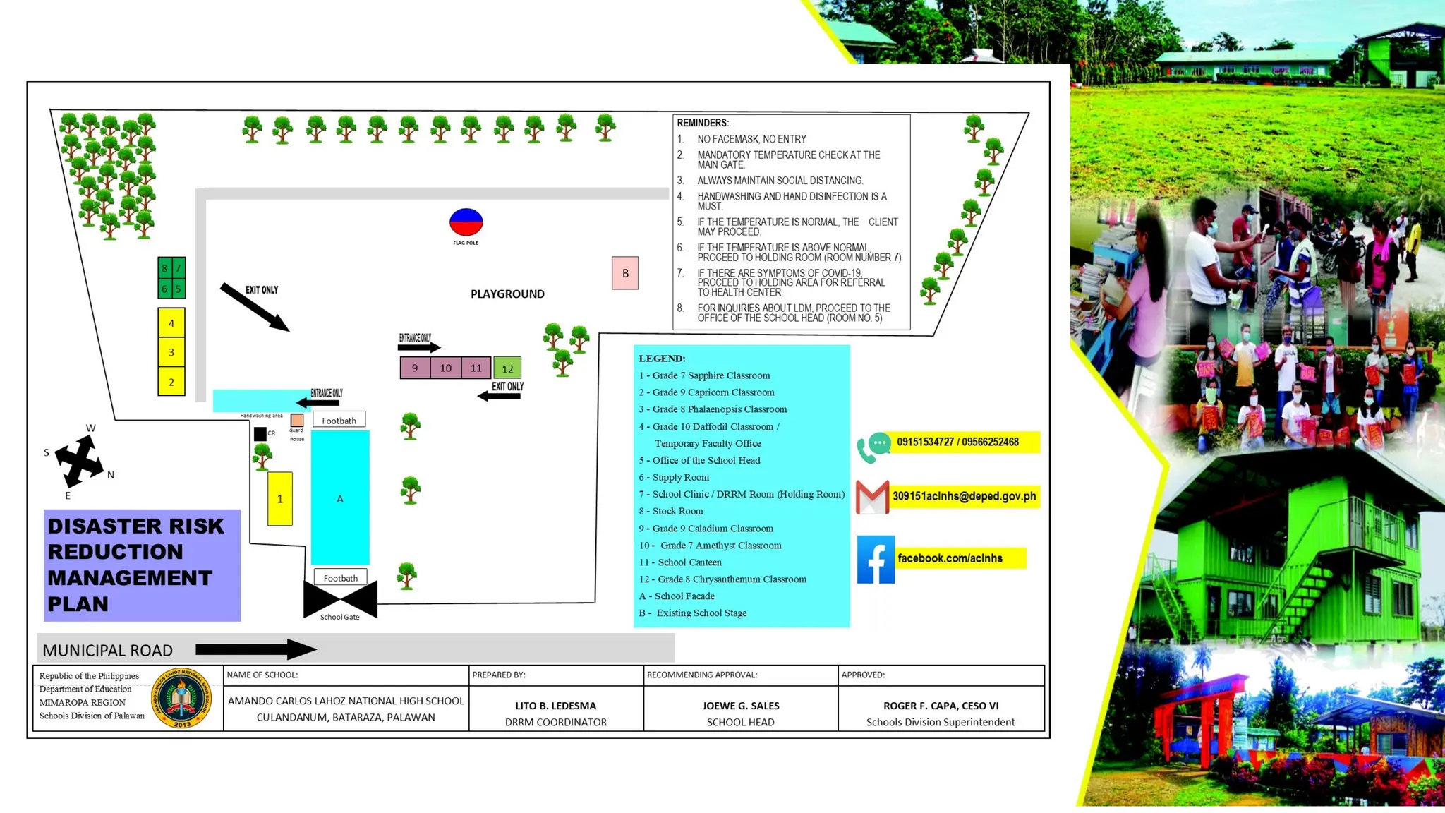 The document outlines the implementation of disaster risk reduction and management (DRRM) within basic education, guided by Philippine laws RA 10121 and RA 9155. It emphasizes school safety through structural assessments, emergency preparedness, and stakeholder engagement to ensure educational continuity during emergencies. Additionally, it highlights the importance of equipping schools with necessary resources and establishing protocols for health and safety, particularly in the context of ongoing challenges like distance learning and health protocols.