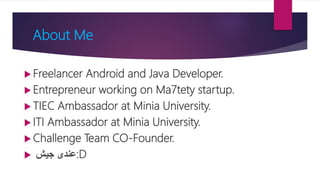 The document provides information on how to become an Android developer. It begins with an introduction by the author and then outlines the agenda which includes understanding the differences between smartphones and feature phones, sample apps and startups, operating systems like Android and iOS, how to earn money from apps, and how to get Android developer jobs. It then dives deeper into topics like what Android is, its architecture, how to learn programming basics in Java, how to connect designs to programming using activities and layouts, and how to connect apps to databases. The document provides resources for people to get started in app development and includes contact information for the author.