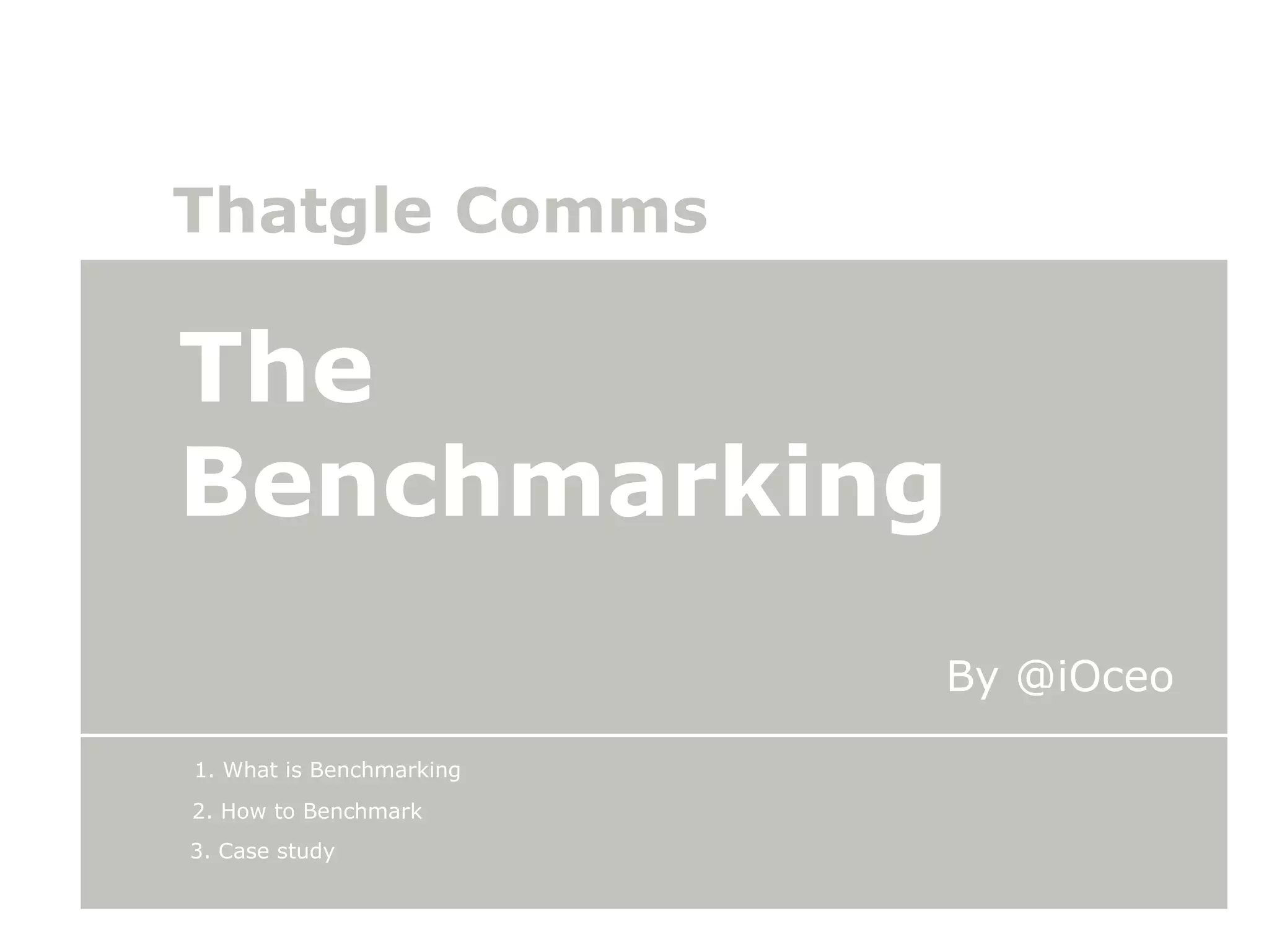 1. What isBenchmarking 2. How to Benchmark 3. Case study By @iOceo