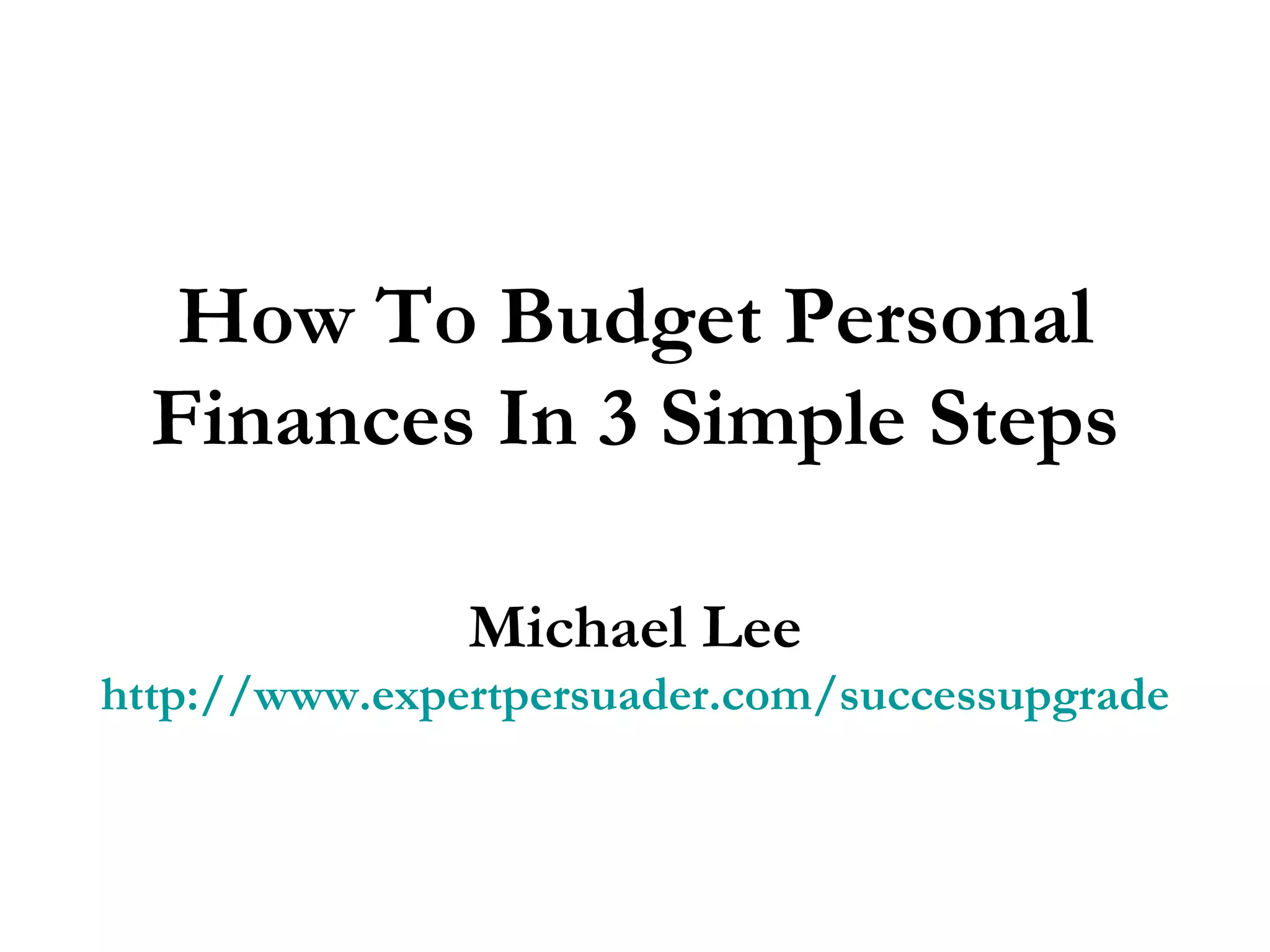 The document outlines a simple three-step process for budgeting personal finances, emphasizing the importance of tracking expenses, saving a portion of earnings, and utilizing online budgeting tools. Step one involves listing daily expenses to increase awareness of spending habits. The second step suggests saving 5-10% of earnings, while the final step recommends using budgeting software like Mint or Quicken to manage finances effectively.