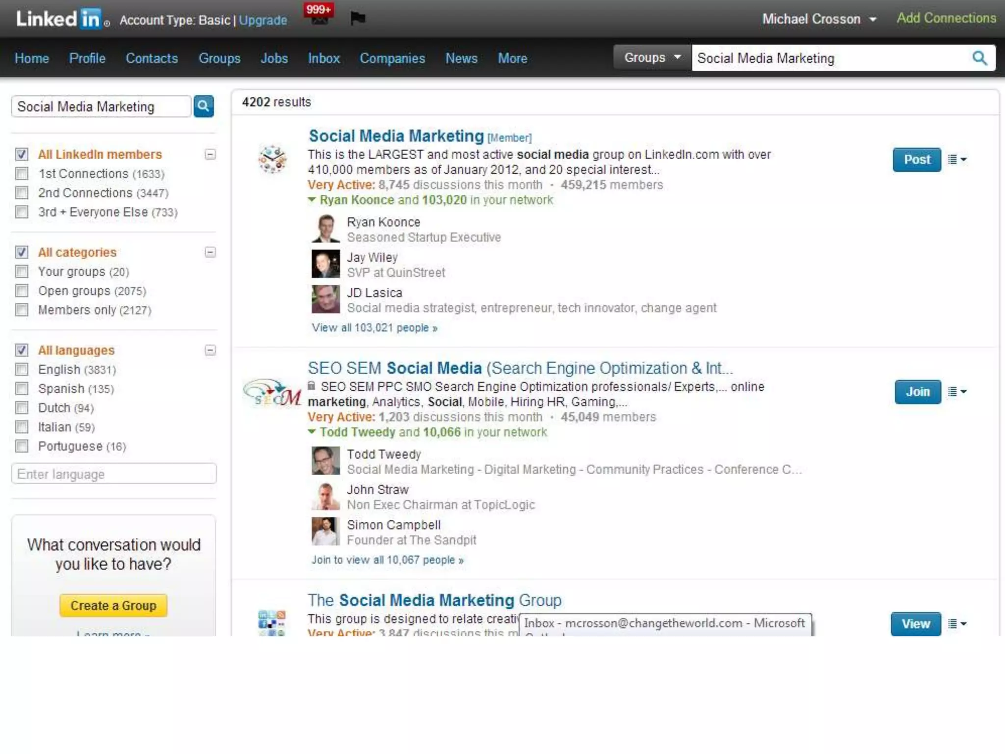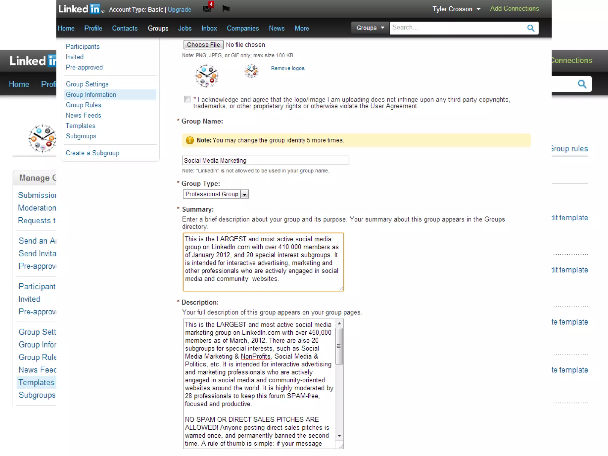 The document provides tips on how to build a large and successful LinkedIn group in 6 steps: 1) Creating the group from scratch, 2) Setting up the group for success, 3) Seeding the group for growth, 4) Marketing the group where it matters, 5) Moderating the group for quality control, and 6) Monitoring metrics for continued success. Key recommendations include choosing an appealing group name, inviting influential members, engaging members across platforms, acquiring unique content, monitoring the group daily, and using analytics tools to track metrics.