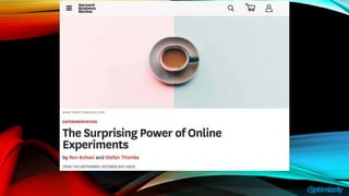 This document provides an overview of how to build a successful experimentation program within an organization. It discusses the importance of experimentation for innovation and outlines key areas to assess when developing an experimentation capability, including organizational culture. It then describes attributes of mature experimentation cultures and how most organizations are currently at an early stage. The rest of the document focuses on operationalizing experimentation through identifying a team, following an experimentation methodology, understanding metrics, and getting started with small changes.