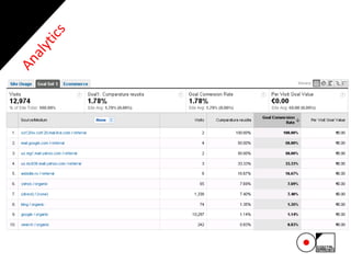 This document provides guidance on building an efficient website. It discusses defining the purpose and structure of the site, including functionality, usability, design, content, accessibility, search engine optimization, and analytics. Key aspects covered are defining the goal and audience, creating an intuitive layout, optimizing for conversions and user experience, and using analytics to test performance and improve the site over time. The overall message is that websites should be designed with users and goals in mind, and optimized through testing and analysis.