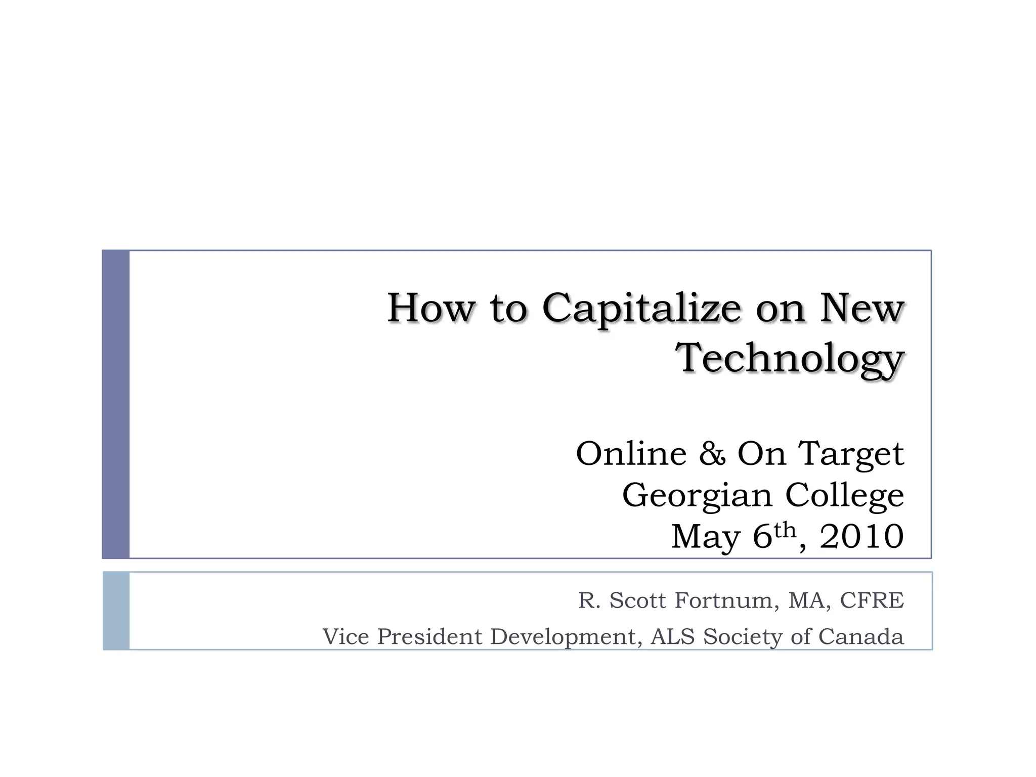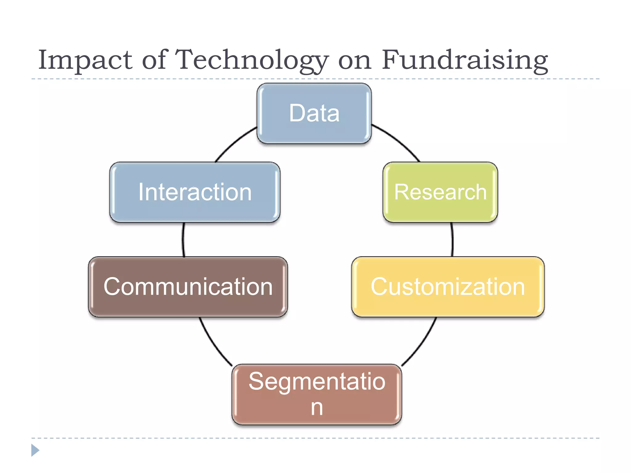 The document discusses the impact of new technology on fundraising strategies, presenting a five-year plan for organizations to integrate modern tools like social media and the internet into their communication and development efforts. It emphasizes the importance of adapting to technological advances to enhance operations, address challenges, and seize opportunities while raising critical questions about implementation. The discussion also highlights the generational perspective on technology and its perceived relevance to different stakeholders.