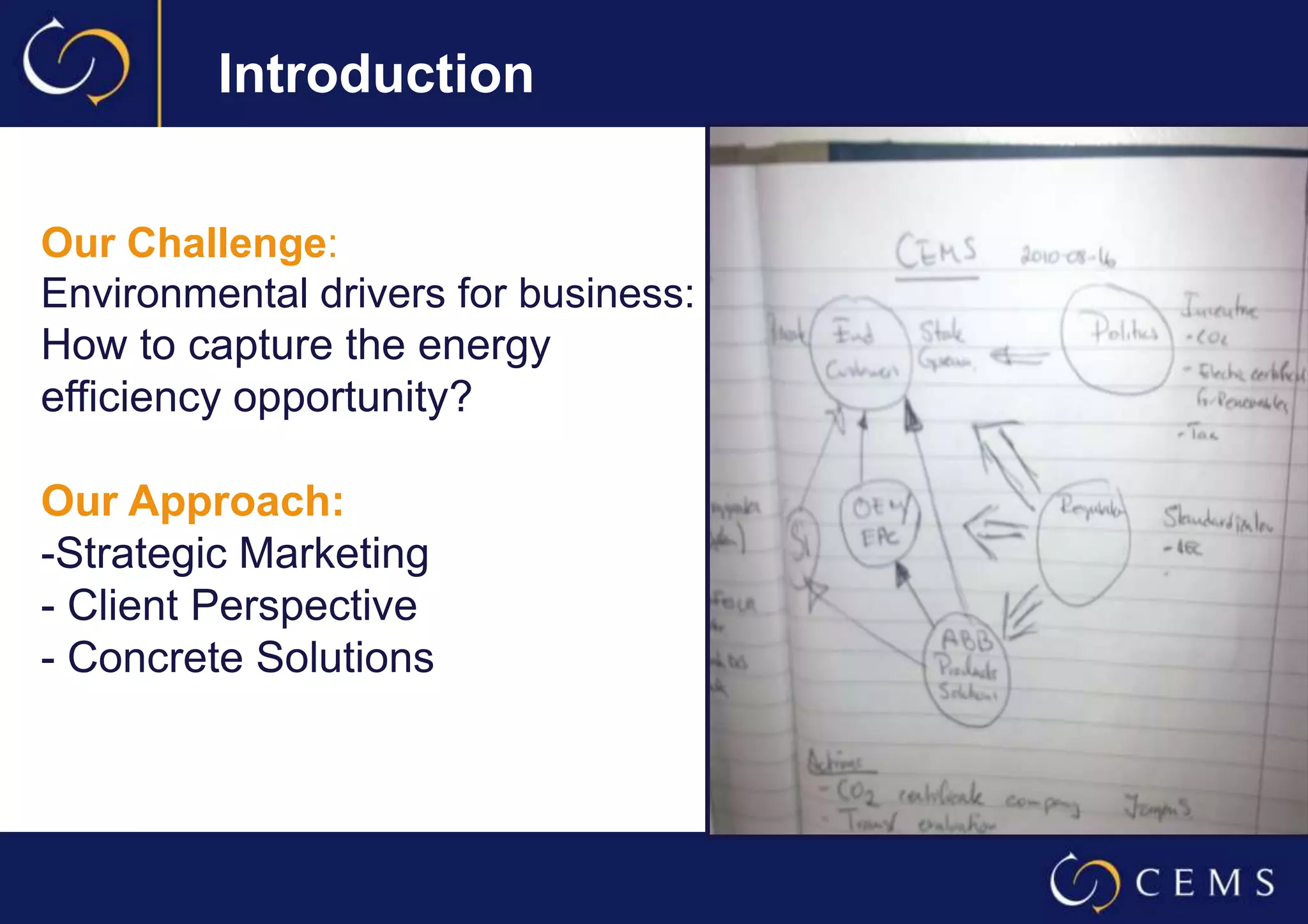 The document discusses the environmental drivers for businesses focusing on capturing energy efficiency opportunities, with implications for stakeholders such as utilities and industries. It outlines strategic recommendations including proactive energy efficiency solutions and partnerships with investors and ICT. Additionally, it highlights the projected growth in renewable energy and the regulatory landscape aimed at increasing energy efficiency within Europe.