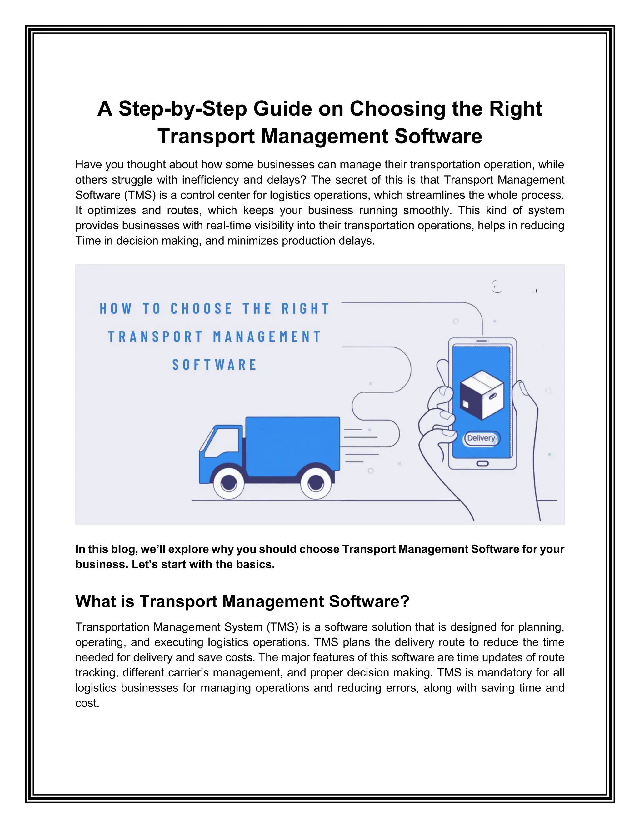 Looking for the best Transport Management Software (TMS)? Discover expert tips to evaluate features, compare providers, and choose the right TMS solution to optimize logistics, cut costs, and streamline your supply chain.