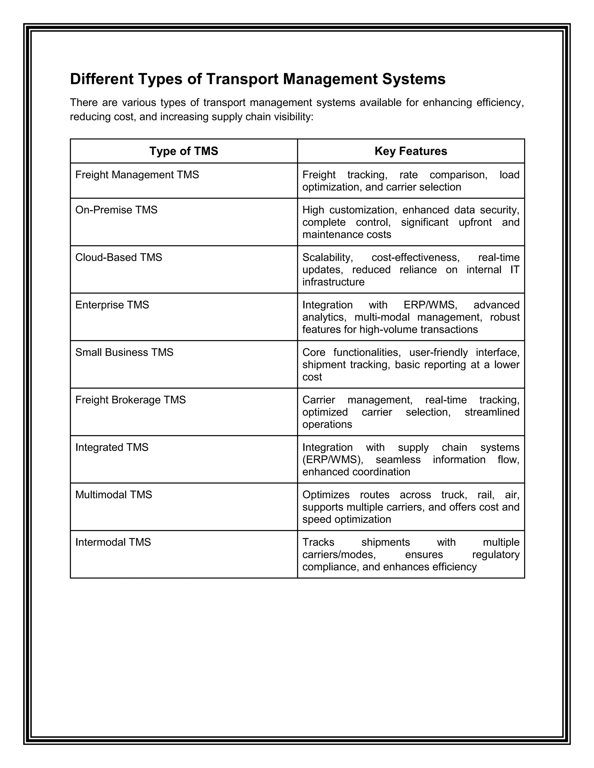 tracking, different carrier’s management, and proper decision making. TMS is mandatory for all