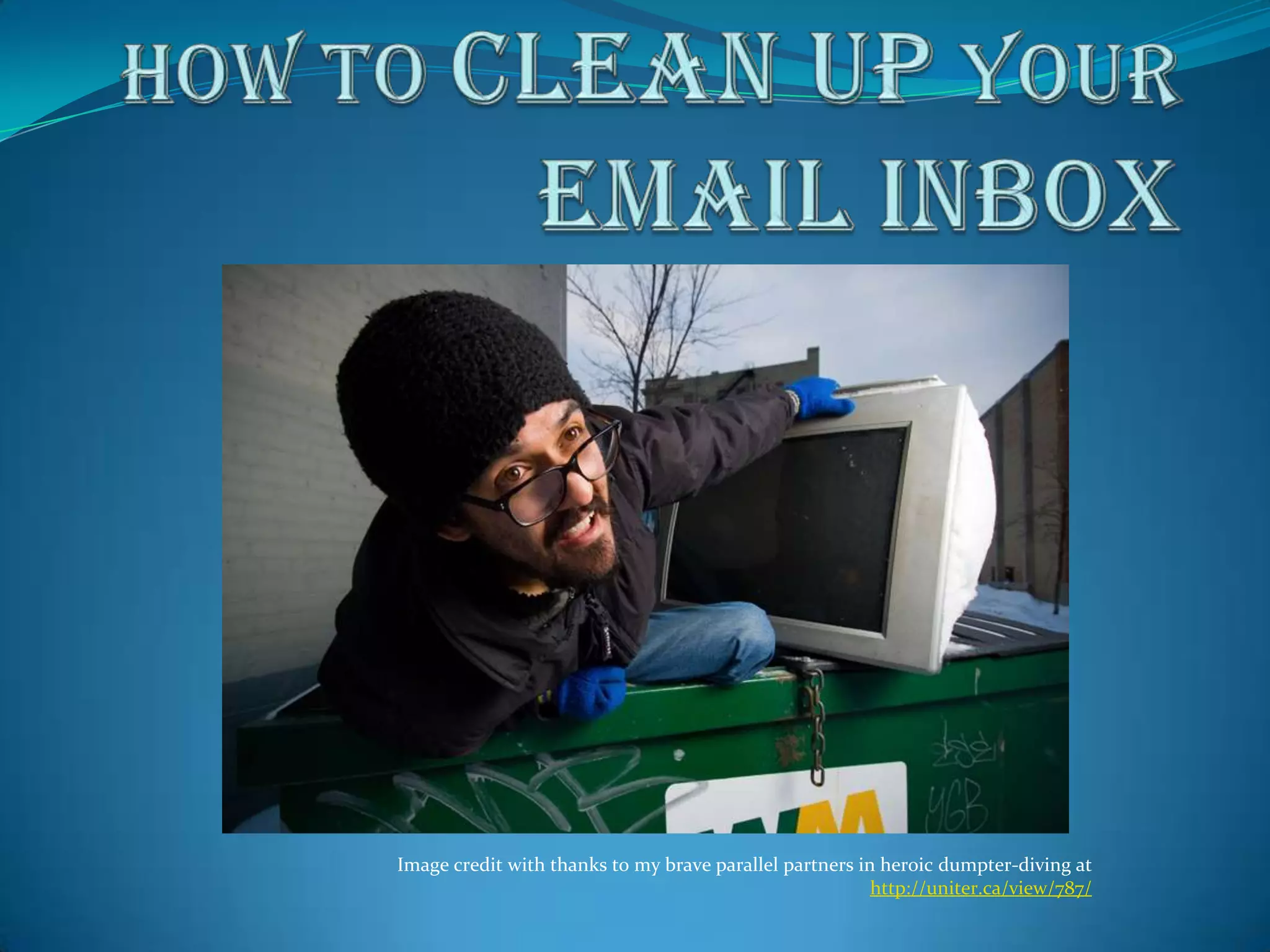 The document provides tips for managing email backlogs and reducing incoming emails. It suggests searching by sender or keyword to find backlogs, going through drafts and emails before a cutoff date, deleting ridiculous emails without opening, processing emails daily, deleting emails after opening, unsubscribing relentlessly, and minimizing incoming emails to make management easier. The document is authored by Hampton Marketing under a Creative Commons license.