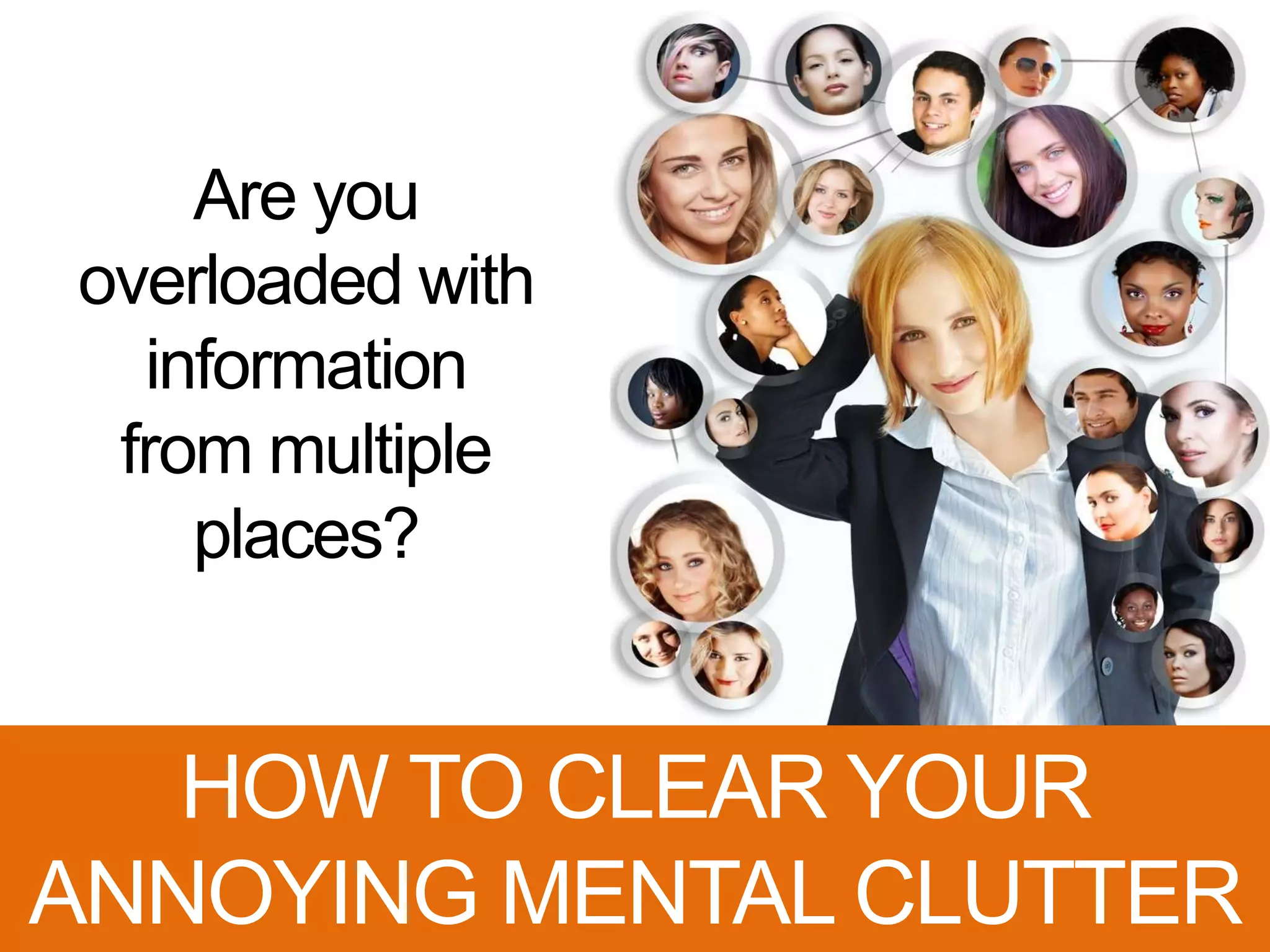 The document discusses strategies to reduce mental clutter by utilizing a system to capture and organize tasks and information, particularly through the pro.inbox app. It outlines a three-step system: capture everything, make it actionable, and filter social media and email messages effectively. The document also provides detailed instructions on how to filter and convert various types of information into manageable tasks and calendar items.