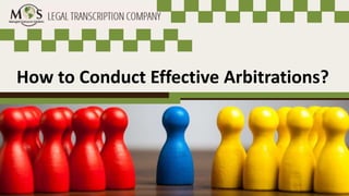 Arbitration transcription services can support document production and the sharing of digital files to provide the tribunal with a clearer understanding of evidence. Arbitrators should plan and organize their roles early in the process to avoid needless delays. Lawyers must present their client's story in a logical, structured manner while maintaining a balance with objections by limiting them to important matters.