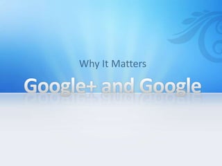 Google+ is a social network owned by Google that can help businesses connect with customers. Key points include setting up a Google+ page for your business, engaging with followers by posting relevant content regularly and using hashtags, developing communities using Circles and Hangouts, and promoting your page by adding +1 buttons and sharing links to drive traffic. Best practices examples highlighted H&M's use of photos and videos to engage followers.