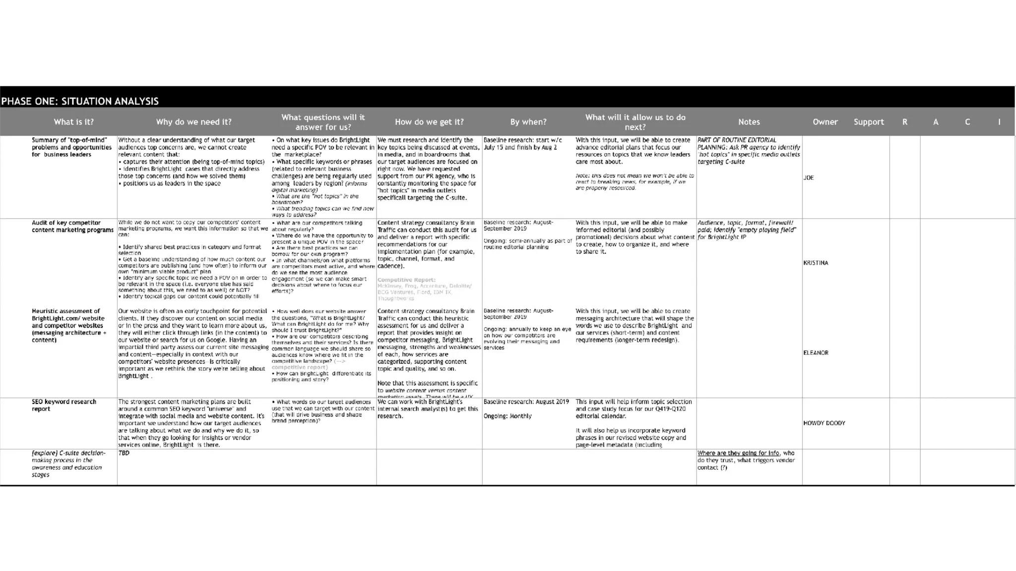 Guidance on assessing current content position and creating a roadmap for desired goals in content marketing.