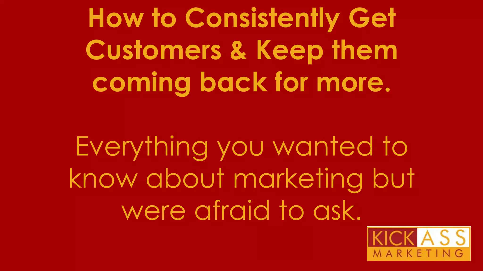 The document outlines an agenda for a marketing training session hosted by Kick Ass Marketing. The agenda includes defining a target audience, lead generation, sales processes, pricing, time management, and selecting key marketing activities. Attendees are encouraged to brainstorm their target audiences, sales processes, and lead generation tactics. The training also covers how to increase prices, set boundaries for personal time, and prioritize important work. Finally, participants are invited to future networking events and a discovery session.