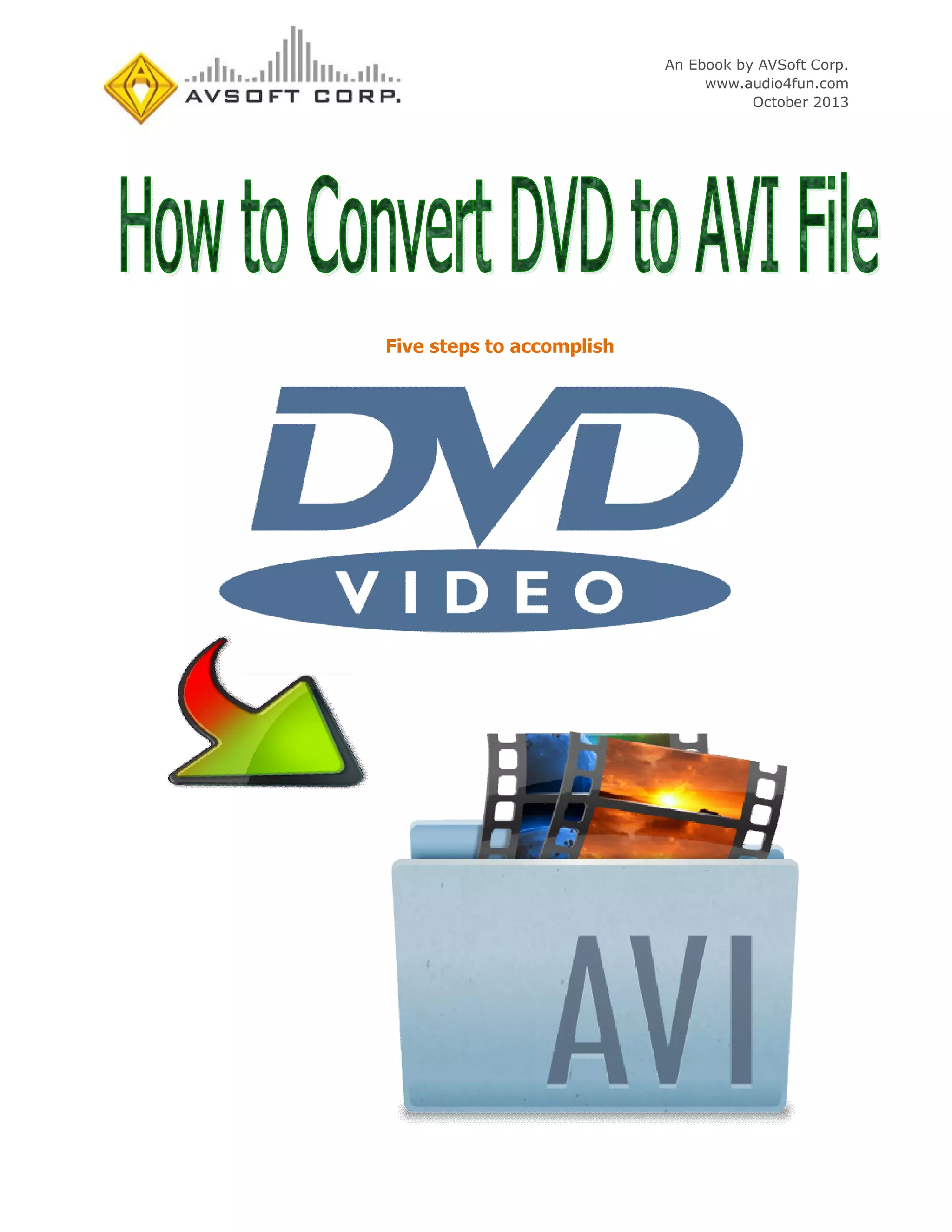 The document is a tutorial on converting DVD movies into AVI format using AV Video Morpher software. It outlines five essential steps: opening the DVD, selecting the video convert mode, adjusting input and output settings, and initiating the conversion process. Additionally, it includes information about AV Video Morpher software and other available products from Audio4fun.