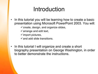 This document provides instructions for creating a basic PowerPoint presentation in 9 steps: