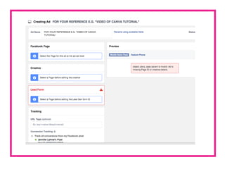 Create a lead generation ad on Facebook by naming your campaign, choosing your targeting, and creating a call to action form with custom questions. Review and save your work, and once approved, the ad will run and collect leads that can be downloaded as a CSV file to import into a CRM.