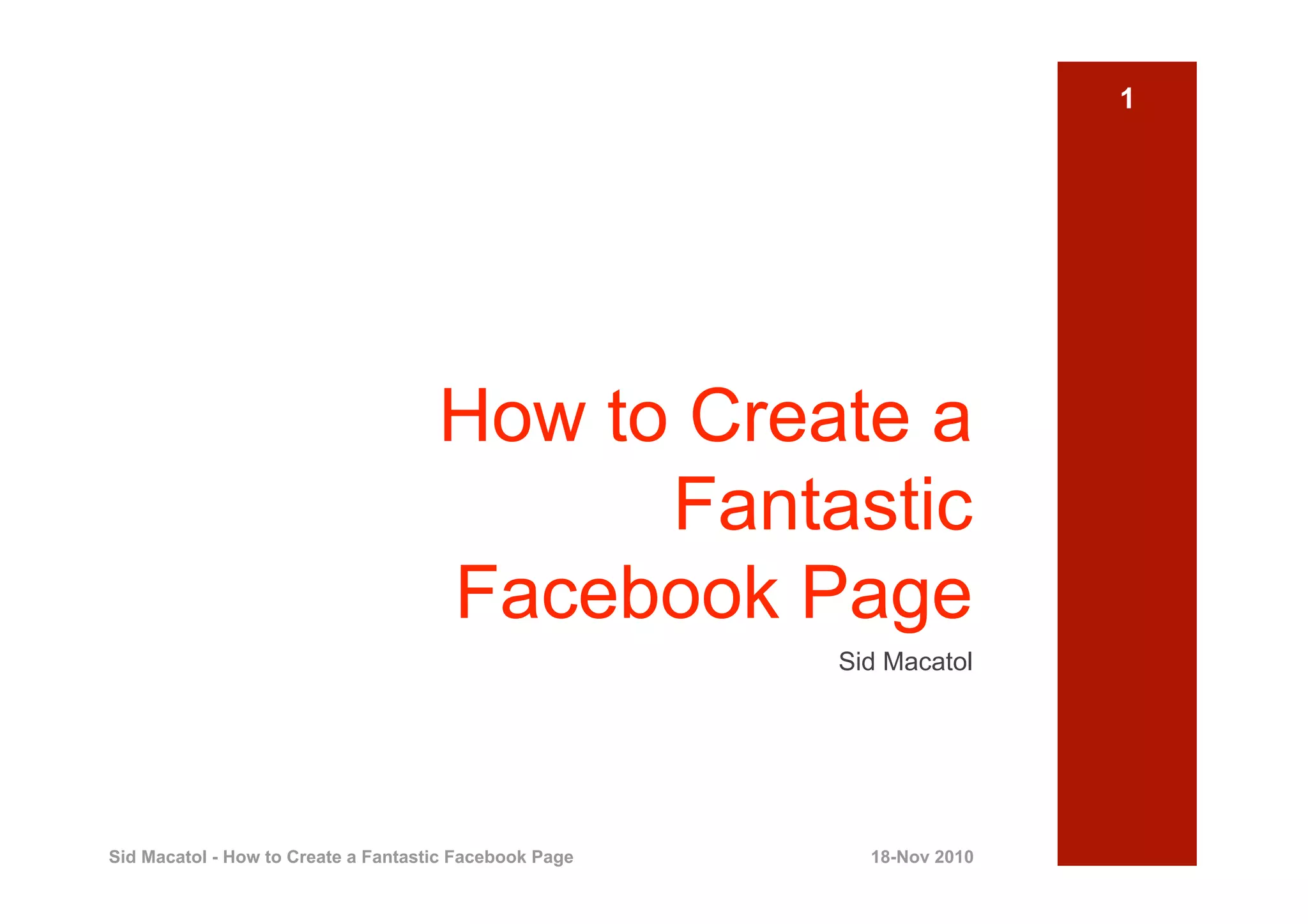 The document provides instructions for creating a fantastic Facebook page, including preparing a profile picture no larger than 180x540 pixels and 300 dpi, and a welcome image 510 pixels wide to contain a call to action, promotional text, and information about the page owner.