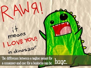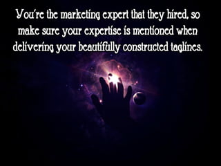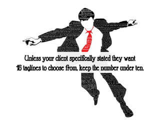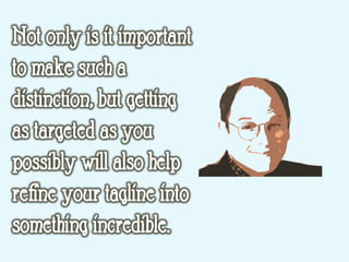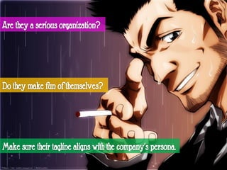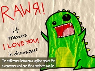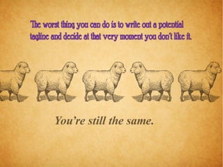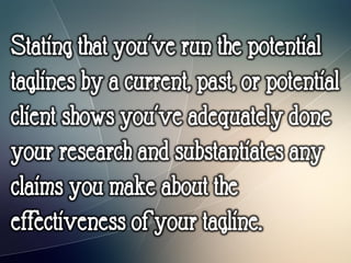 Taglines are the second most noticeable element of a business' identity after their logo. A good tagline must accomplish several important goals within just a few words, such as being understandable, summarizing the company's products or services, building customer trust, and motivating purchases. While crafting an effective tagline is challenging, it is especially difficult when the tagline creator has little information about the company it represents.