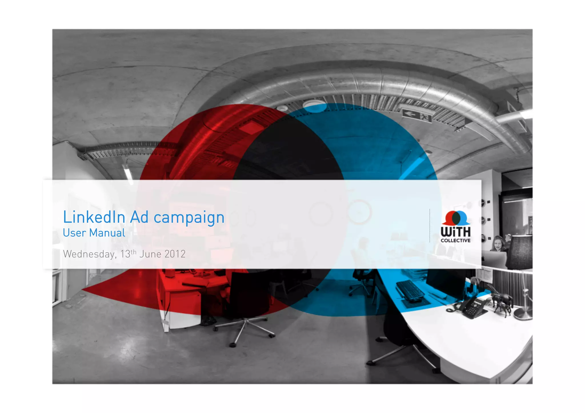 This document provides instructions for setting up and managing a LinkedIn Ad campaign. It outlines the four step setup process: 1) campaign setup, 2) targeting, 3) campaign options, and 4) checkout. It also describes how to track results and view reporting data. Guidelines are provided for creating ad content, including language, images, formatting and content restrictions. The document is intended as a top-line overview of the LinkedIn Ad platform.