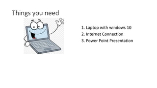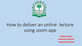 To deliver an online lecture using Zoom, you need a laptop with Windows 10, an internet connection, and a PowerPoint presentation. You then download the Zoom client from their website, sign in, and either schedule a meeting by filling in details and sharing the meeting ID with students or immediately host a meeting by clicking "Host a meeting" and selecting Zoom to open. You are then live and share the meeting ID so students can join.
