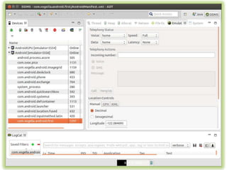 The document provides a comprehensive guide on using the Android emulator and virtual devices for testing applications. It covers topics such as creating and starting Android Virtual Devices (AVDs), using the Android project wizard, and essential shortcuts, as well as details about Android developer tools like the Dalvik Debug Monitor Service. It emphasizes the importance of selecting appropriate API versions and device configurations for effective application testing.