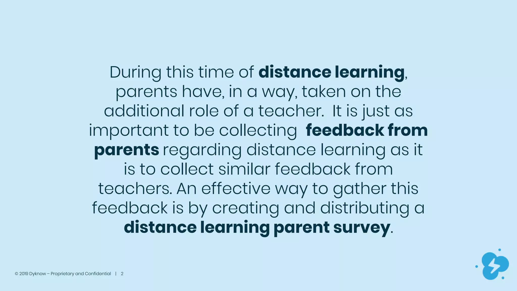 The document discusses the importance of creating effective distance learning parent surveys to collect feedback from parents who have taken on teaching roles during remote education. Tips for increasing engagement include clearly communicating the survey's value, keeping it concise, and sharing results with participants. The document also provides examples of useful survey questions that can help schools better understand parents' concerns and successes during this time.