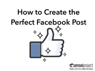 The document provides tips for creating effective Facebook posts that will engage audiences and achieve high organic reach. It recommends that posts educate, entertain, or inspire rather than advertise; focus on creating engaging content through questions, images, and video; and optimize links and images to tell your story. The goal is to post relevant, positive content that elicits reactions without directly asking for likes or shares.