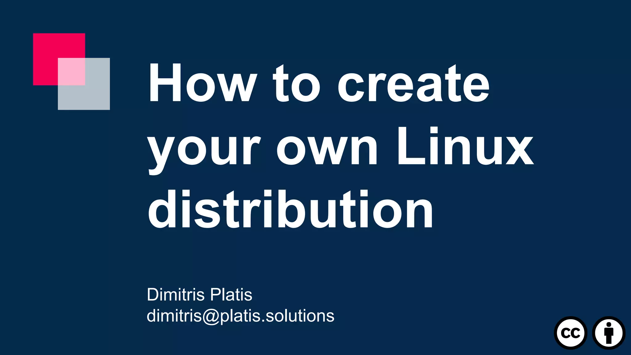 This document outlines the process of creating a custom Linux distribution using Yocto, tailored for embedded systems like Raspberry Pi. It covers the rationale behind developing a custom distro, configuration of hardware and software, and essential components including recipes, layers, and cross-compilation. The document also provides practical commands and examples for setting up the environment and building the image.