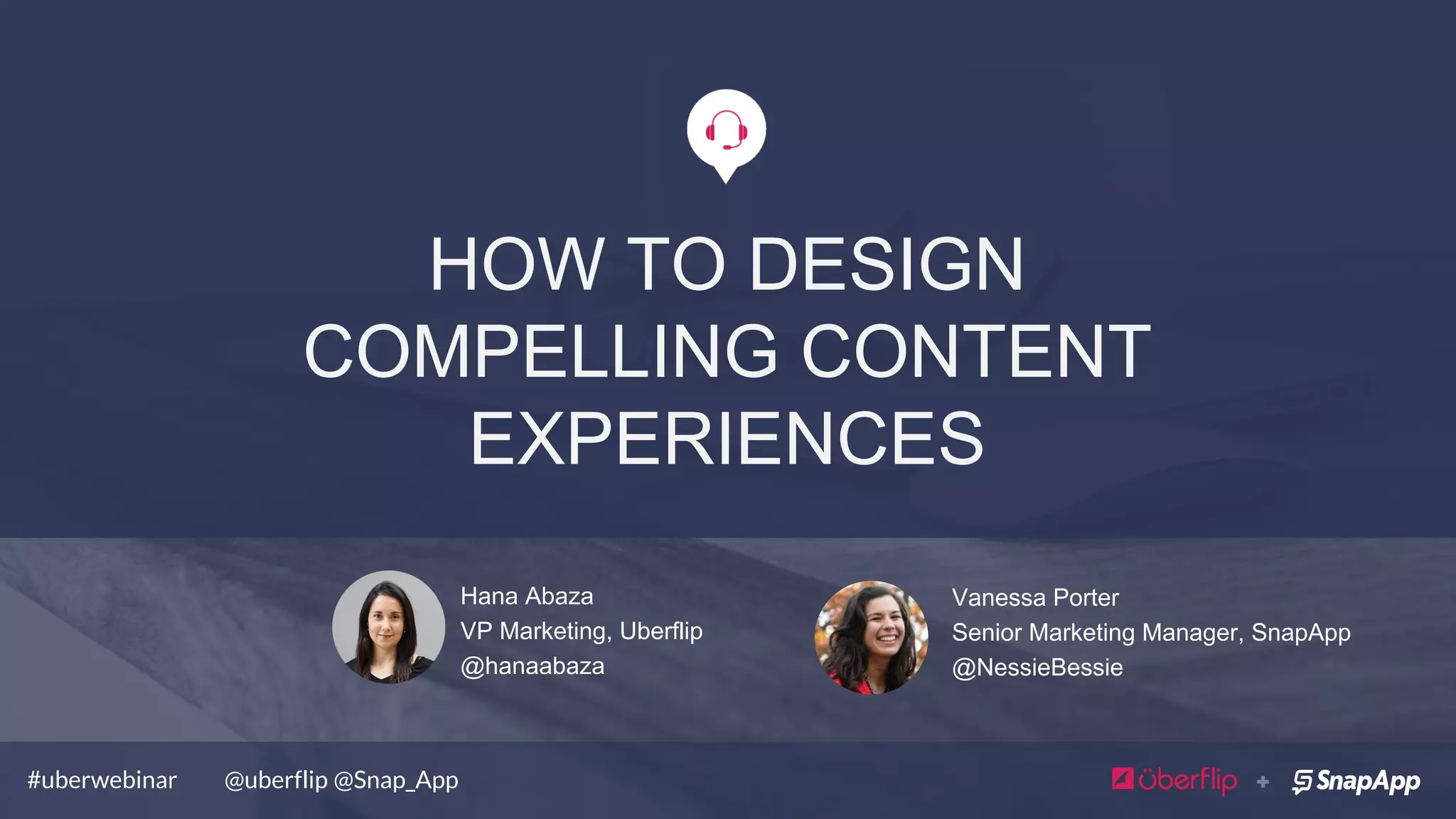 The document discusses a webinar led by marketing experts from SnapApp and Uberflip on creating compelling content experiences. It emphasizes the importance of interactive content in engaging buyers, providing value, and improving data collection to aid marketing efforts. Key takeaways include defining goals, aligning value with objectives, and optimizing content experiences across various platforms.