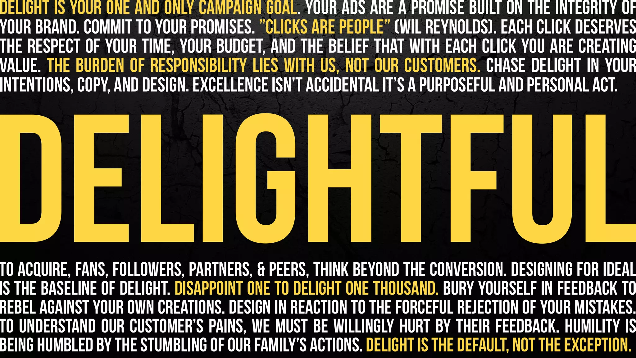 This document discusses how to design email landing pages that enhance conversion rates by focusing on customer respect and creating delightful experiences. It outlines seven principles of conversion-centered design, which include attention, context, clarity, congruence, credibility, closing, and continuance, emphasizing the need for engaging headlines, clear calls to action, and minimal distractions. The overarching message is to prioritize customer satisfaction and to meet the promises made in advertising to improve conversions and build brand loyalty.