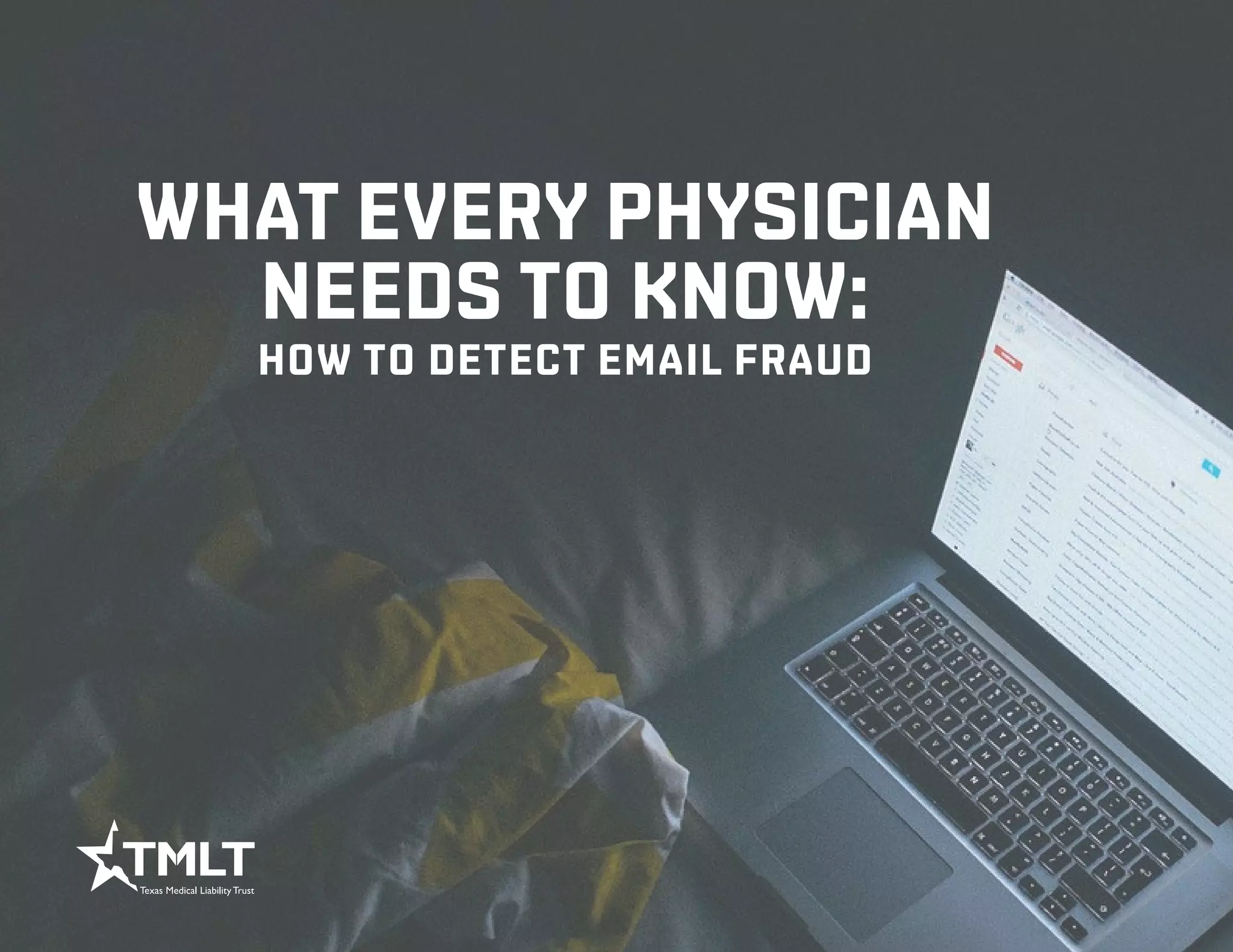 This document provides information about how to detect email fraud, also known as phishing. It outlines several signs that an email may be a phishing attempt, including spelling and grammar mistakes, threats or requests for urgent responses, suspicious links that do not match the website addressed in the email, and requests for personal or financial information. The document advises physicians not to provide any sensitive information or click on links in response to suspicious emails and to independently verify requests with the purported sender using verified contact information.