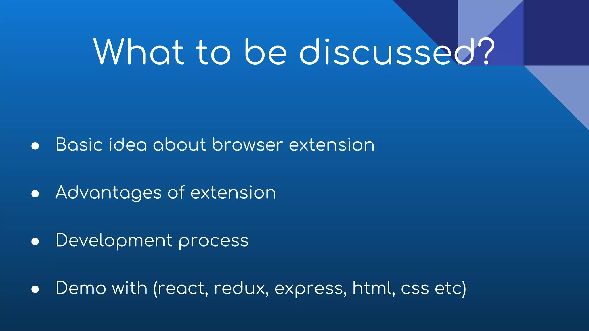 This document discusses how to develop browser extensions. It begins by defining a browser extension as a plugin that extends the functionality of a web browser. It then covers the basic architecture of extensions, including the manifest file, browser and page actions, content scripts, background pages, and permissions. The document provides advantages of extensions such as ease of use and support for modern technologies. It also includes a demo of building an extension using technologies like React, Redux, and Express.