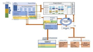 This document discusses PI planning for agile release trains. It begins by defining PI planning as a cadence-based, face-to-face event that aligns teams to a shared mission and vision. It notes when PI planning typically occurs and its goals of commitment, alignment, fast decision making, and cross-team collaboration. The document then examines why teams struggle with PI planning and what could be done differently, such as cultural awareness and clear communications. It outlines elements of preparation including logistics, organizational, and content readiness. Finally, it discusses setting SMART objectives, planning communication for business alignment, and takes questions.