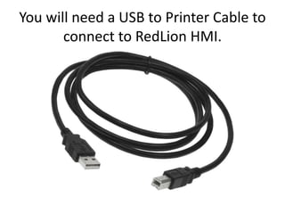 To extract a program from a Redlion HMI using Crimson Software, you need a USB cable to connect the HMI to a computer with the matching version of Crimson downloaded. In the software, select the USB connection under Link, then click Extract to upload the program from the HMI to the computer where it can be saved. Ethernet IP settings can also be configured by clicking Network to connect to the HMI over Ethernet.