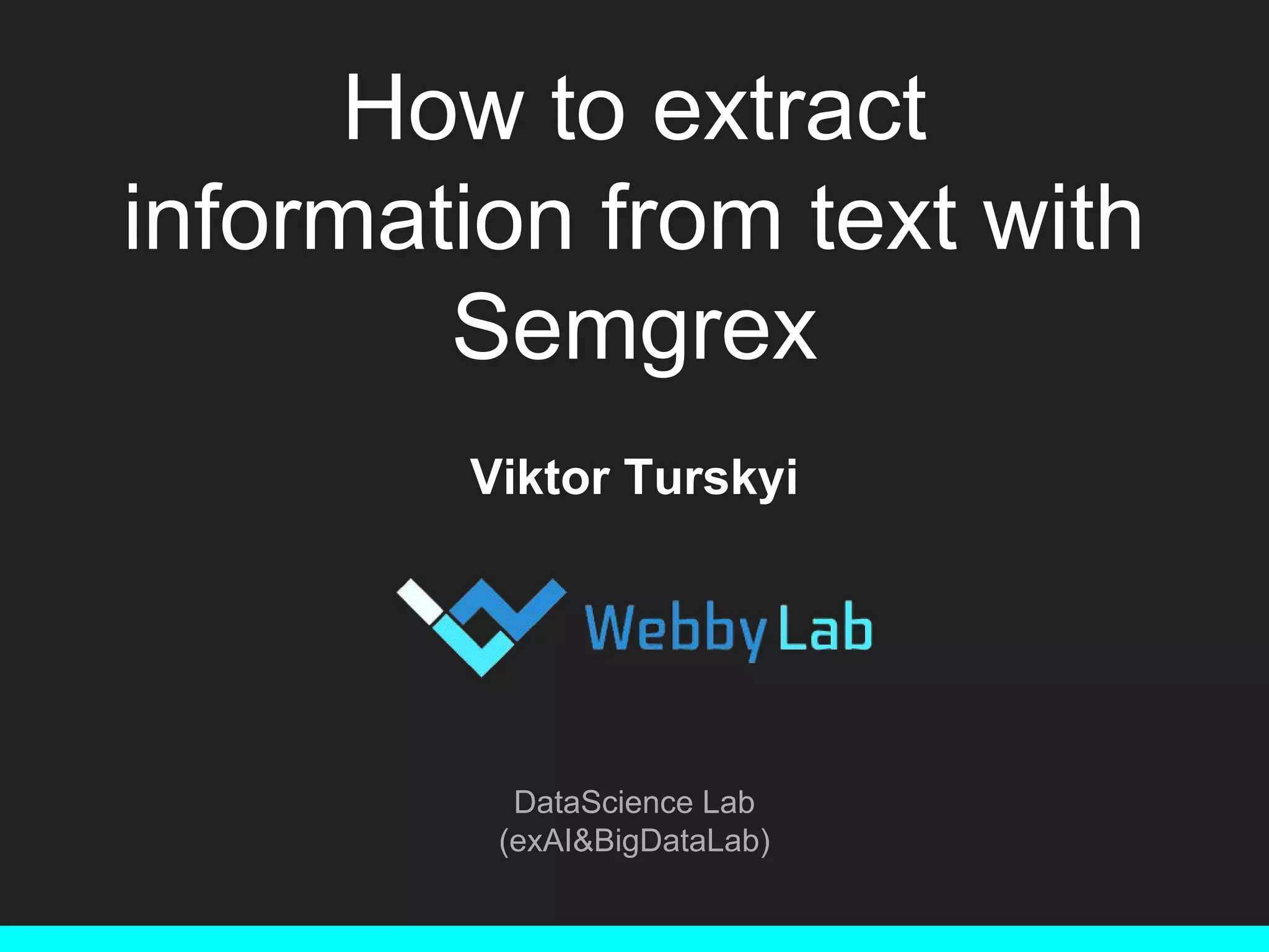 Semgrex allows users to extract information from text using patterns that match syntactic dependencies in sentences. It provides examples of patterns that match noun subjects, direct objects, pronouns, and regular expressions. The document also includes links to the Semgrex npm package, a demo application on GitHub, and resources for natural language processing and syntactic dependencies.